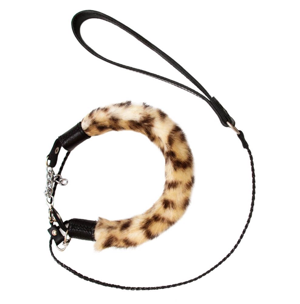 Меховой леопардовый ошейник с поводком прекрасно подойдет для БДСМ развлечений и позволит Вам реализовать свои самые нескромные сексуальные фантазии. Ошейник выполнен из натуральной кожи и искусственного меха, поэтому он не причинит дискомфорта и не натрет нежную кожу шеи. Его размер можно регулировать при помощи цепочки с карабином. К ошейнику пристегивается поводок, благодаря которому Вы сможете держать своего партнера под полным контролем. Сценарий, когда одного из партнеров водят за собой на поводке, может быть очень возбуждающим.