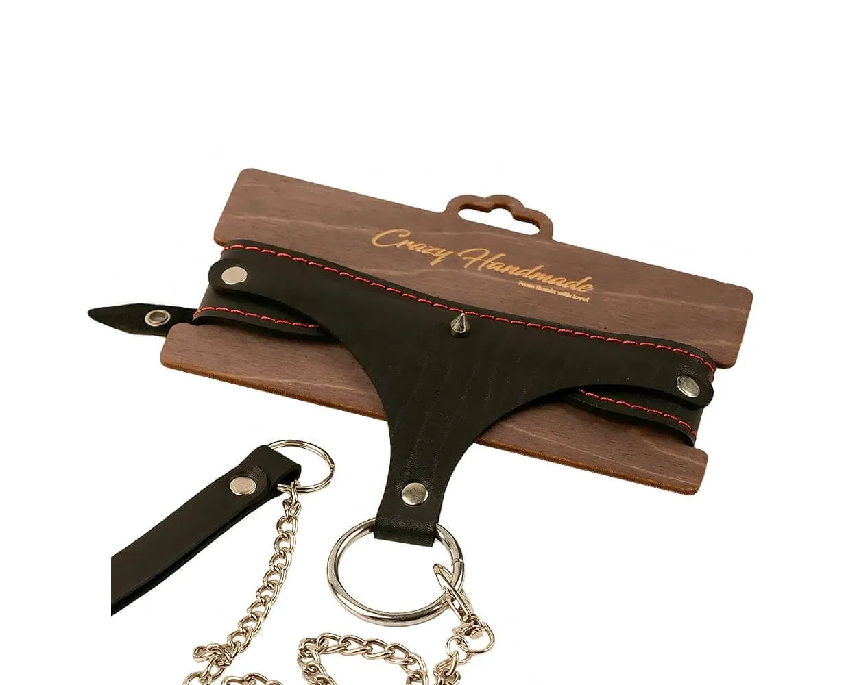 Стильный ошейник от бренда Pink Rabbit выполнен из натуральной кожи и декорирован контрастной строчкой красного цвета и небольшим шипом. У ошейника есть металлический поводок длиной 80 см, за который при необходимости можно будет одергивать своего партнера или направлять его в нужную сторону. Ощущение закованности поможет создать нужный настрой и будет символизировать принадлежность своему партнеру. К большому металлическому кольцу на ошейнике также можно присоединять и другие аксессуары при помощи карабинов.
