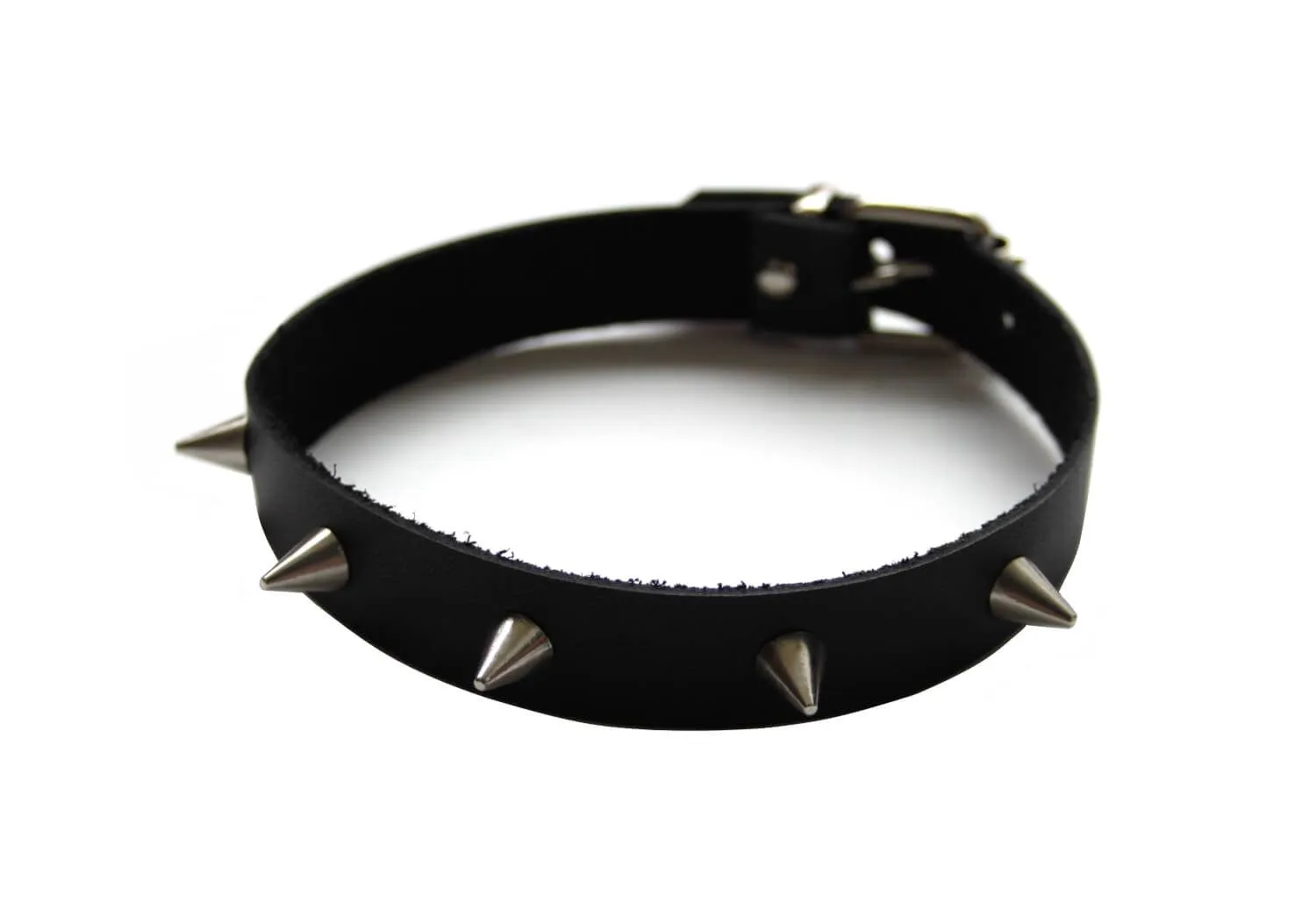 Ошейник сделан из натуральной черной кожи и декорирован пятью металлическими шипами серебристого цвета. Он понравится тем, кто предпочитает интимные игры с элементами БДСМ, ведь он добавит образу сексуальности и дерзости и идеально дополнит любой ролевой эротический костюм. Такой ошейник можно носить и в повседневной жизни, чтобы подчеркнуть свой уникальный стиль.