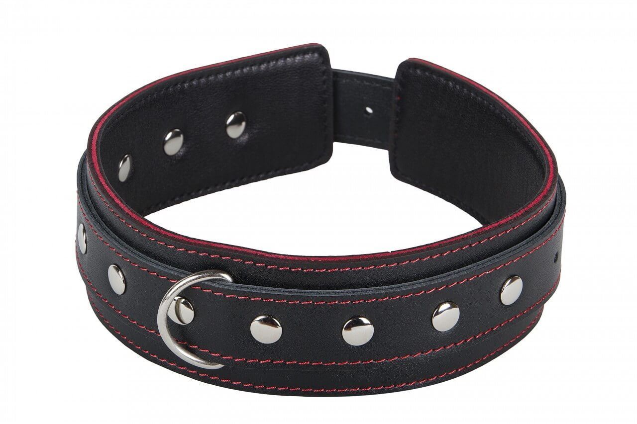 Ошейник от компании Fire Horse поможет Вам разнообразить свою интимную жизнь и добавить в нее немного остроты, вне зависимости от того, есть ли у Вас опыт в играх с элементами БДСМ. Он выполнен из натуральной кожи черного цвета и декорирован отстрочкой контрастного красного цвета. Также ошейник украшен металлическими заклепками, которые придают ему более эффектный вид.