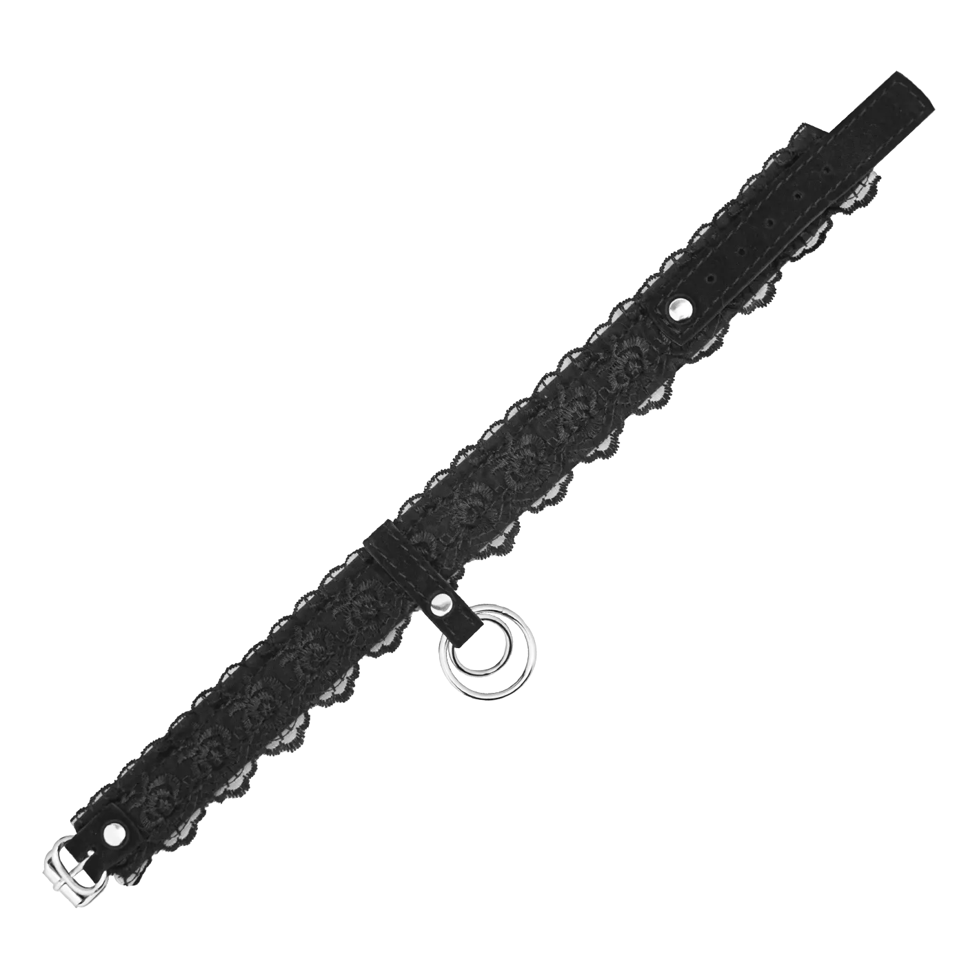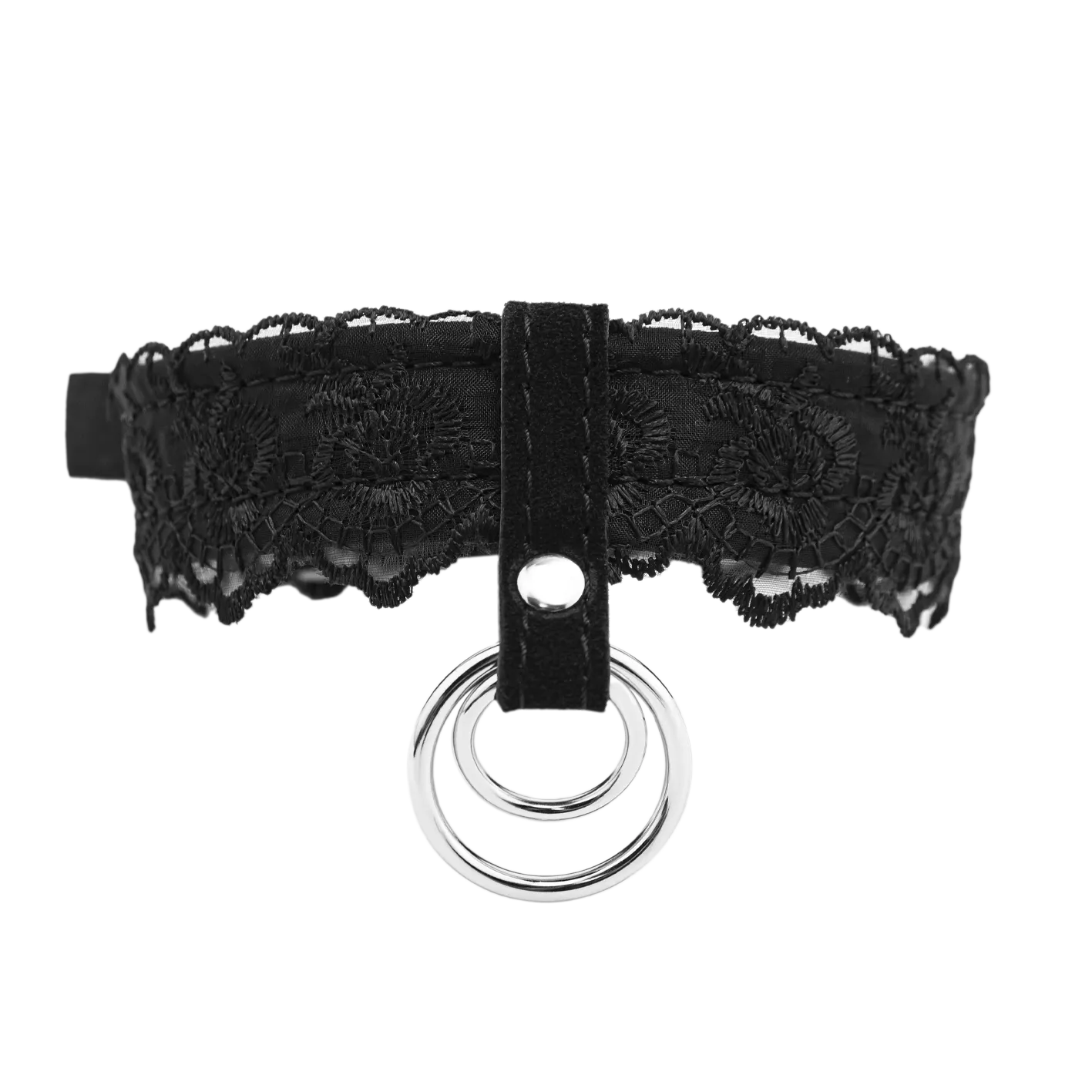 —Ошейник из замши с двойным кольцом и кружевом чёрный