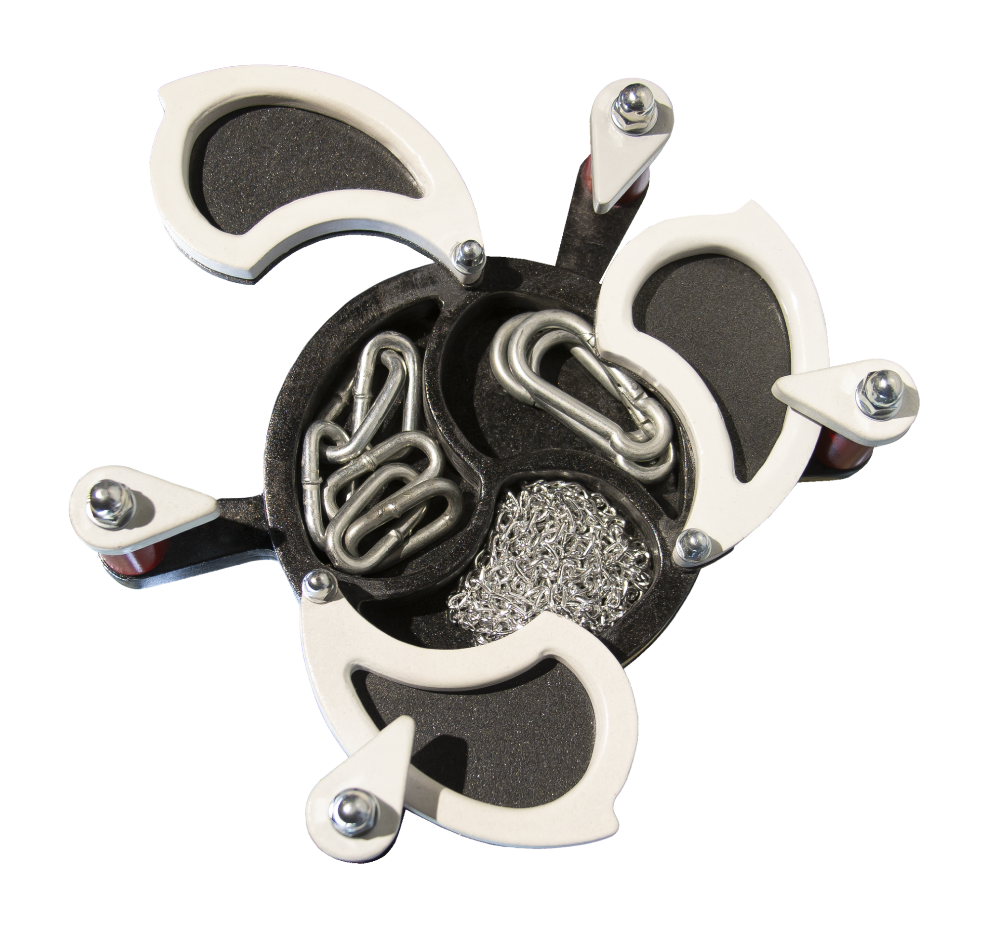 Твердотельный чокер утонченной формы, может быть использован как украшение или для БДСМ практик. С помощью него можно зафиксировать голову в одном положении, при этом не сдавливая шею. Для дополнения образа в наборе есть декоративные цепи, а также жесткие цепи с карабинами, которые позволяют соединять их с браслетами или напульсниками