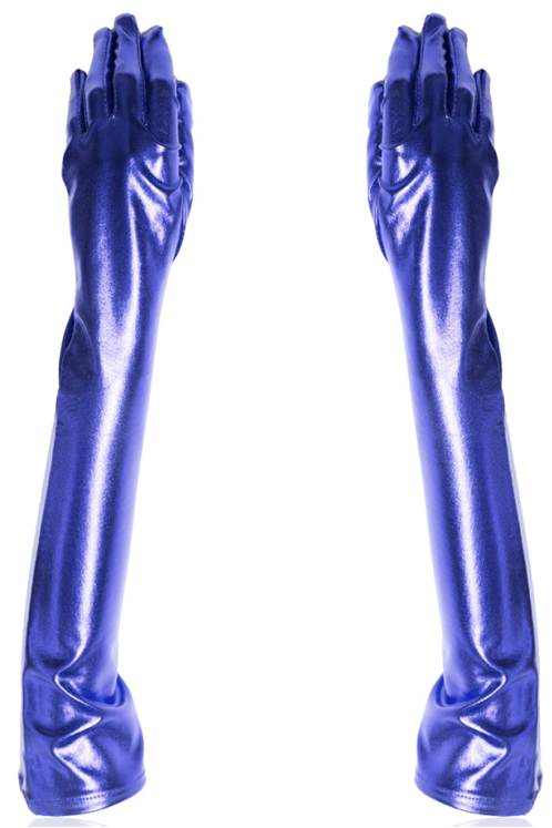 Длинные блестящие синие перчатки. Идеально дополнят ваш эротический или праздничный образ.