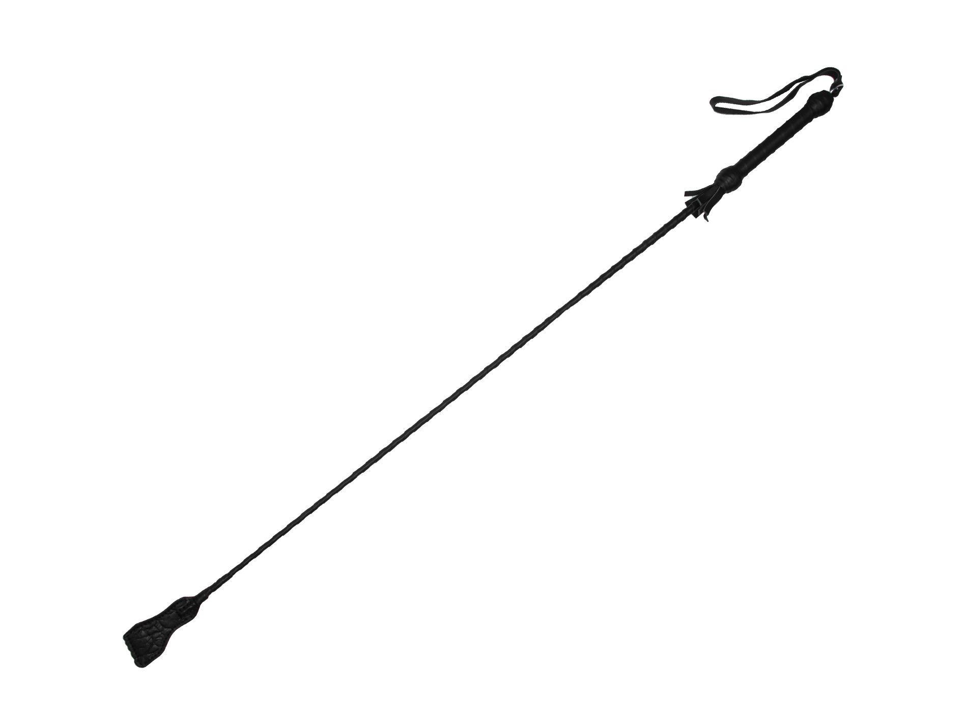 БДСМ стек длиной 850 мм состоит из гибкой основы, овитой натуральной кожей черного цвета, наконечника и удобной рукояти с петлей для надевания на руку (темляк). Стек по своему действию похож на БДСМ розги и ротанговыми тростями(прутьями). Удобство этого ударного в том, что его можно применять и как гибкий девайс. Работать наконечником нужно аккуратно, чтобы не травмировать тело обмоткой, посредством которой он крепится к основной части стека. Еще одно применение стека это частое использование его в качестве указки. Этот девайс часто применяется в психологических играх в доминирование в качестве указки – своеобразного «пульта управления».