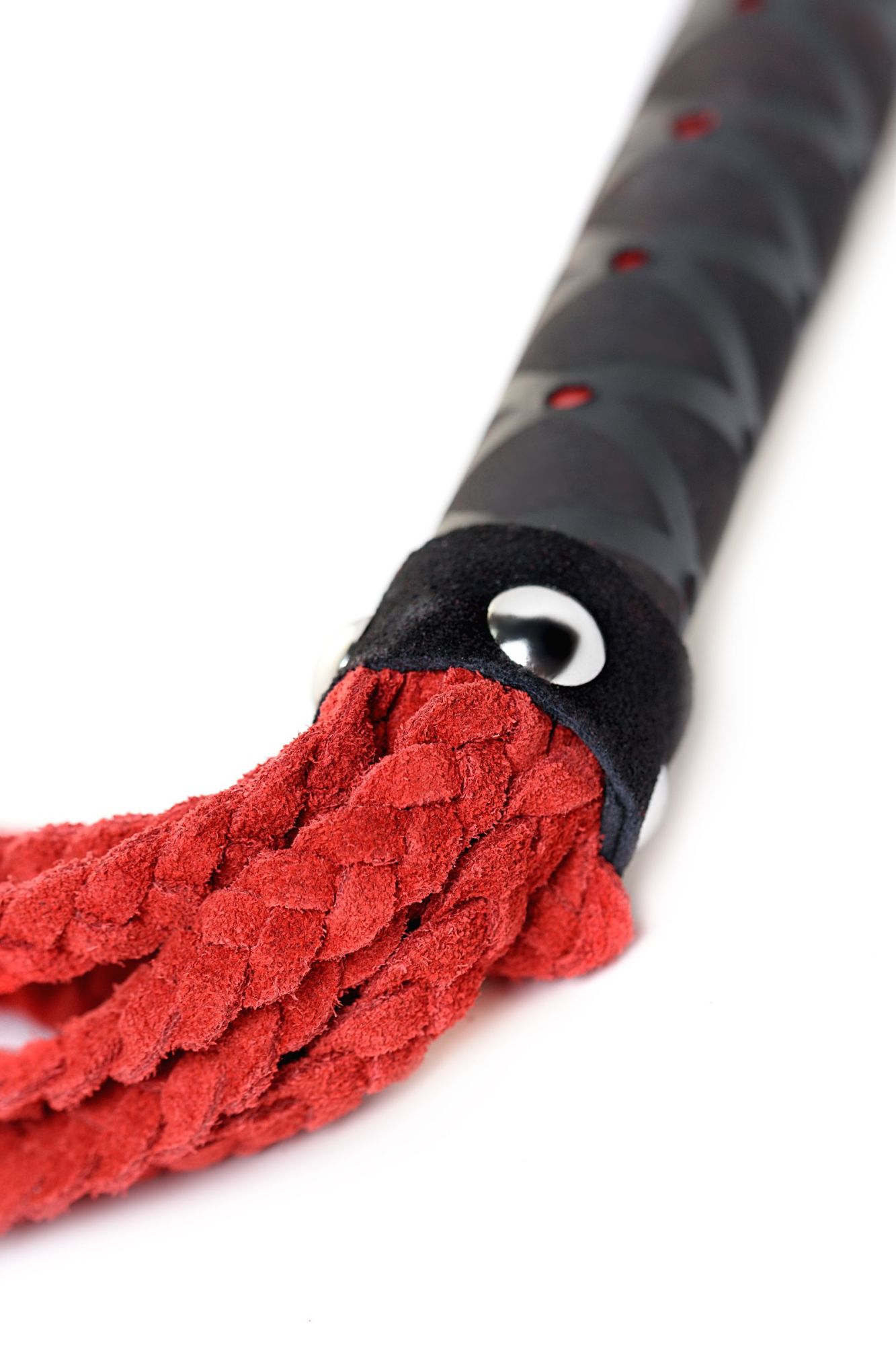 Яркая плеть-кошка с 9-ю плетёными хвостами по 45 см каждый и жёсткой ручкой 23 см, оригинальной отделкой и петлёй для кисти руки — превосходный атрибут для харизматичных господ! Максимально гладкие хвосты плети выполняют хорошие удары даже при небольшом усилии. Поэтому такой аксессуар отлично подходит для воздействий по уже разогретому телу.