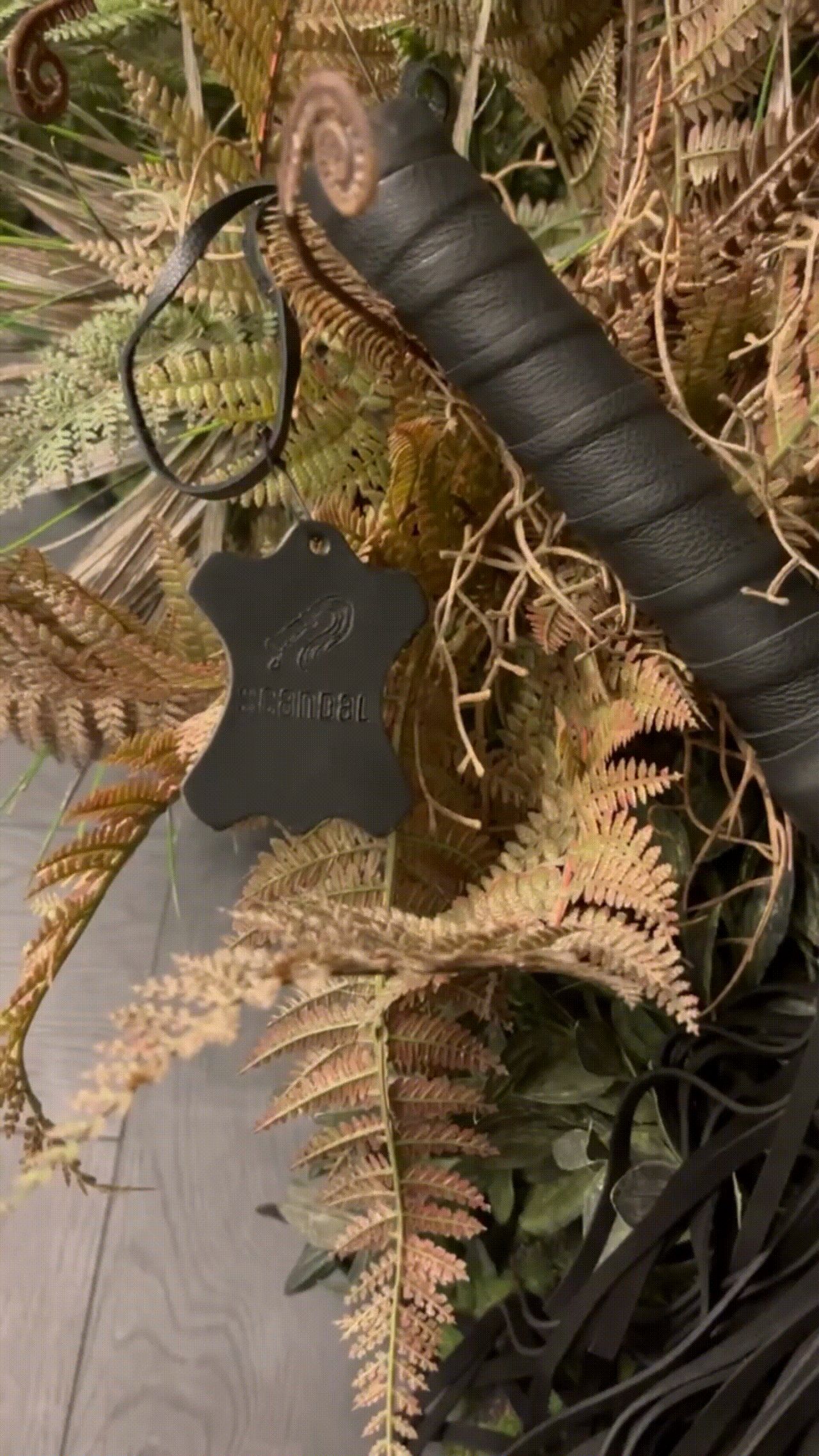 Элегантый флоггер с ручкой из натуральной кожи премиум качества и хвостом из мягкой натуральной замши. Флоггер имеет удобную рукоять с петлей для фиксации изделия на запястье.