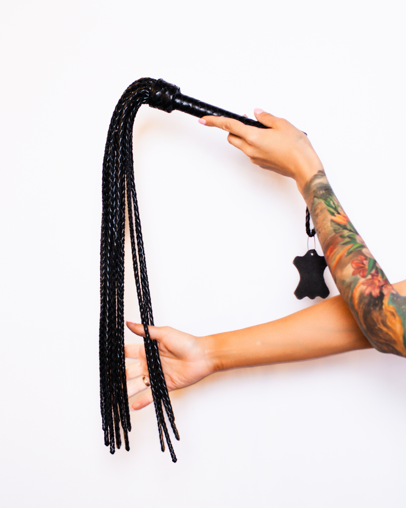 Плетеная мнгохвостая плеть- флоггер из натуральной кожи премиум качества. Плеть имеет удобную рукоять с петлей для фиксации изделия на запястье.