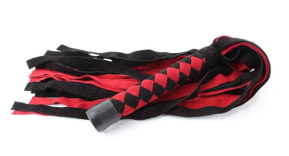 Плеть изготовлена из натуральной замши, имеет 24 хвоста длиной 42см. Хвосты имеют вид лент шириной 1,3 см. Длина изделия- 60см.