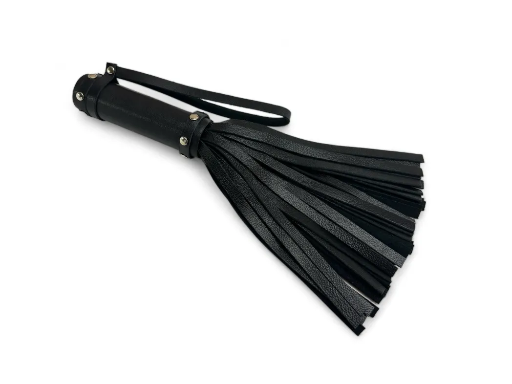 Плеть генитальная мини Queen Arsenal - изящная малышка, которая создана, чтобы доставлять волнующие незабываемые ощущения. Изделие выполнено из натуральной кожи, декорировано качественной металлической фурнитурой. Общая длина плети 26см, хвосты выполнены из нежнейшей овечьей кожи, невероятно мягкие и приятные, их длина 16см, количество 37 штук. Для удобства на рукоятке имеется петелька.  Идеальный аксессуар для игривого настроения!