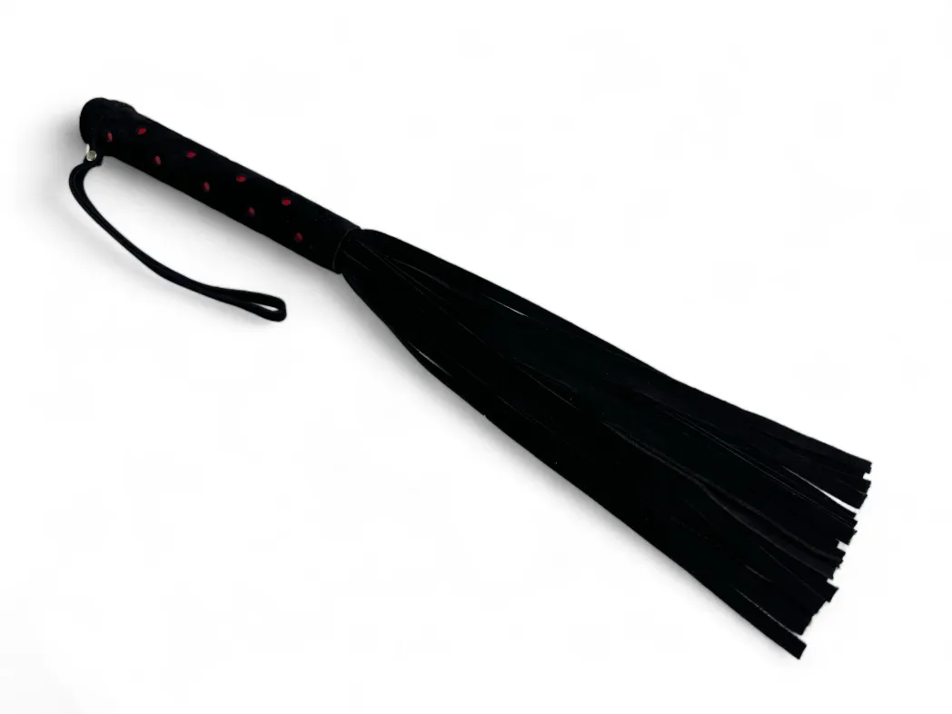 Плеть Red dot Princess - изящная модель, выполненная из натуральной качественной замши, которая очень приятна наощупь. Рукоятка плети имеет необычный дизайн и привлекает внимание. Общая длина аксессуара 43см, длина хвостов 26см, количество хвостов 23 штуки. Прекрасная плеть для Вашей любовной игры!