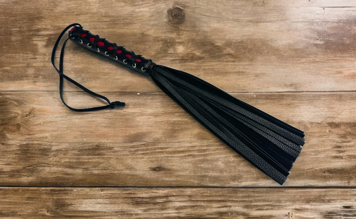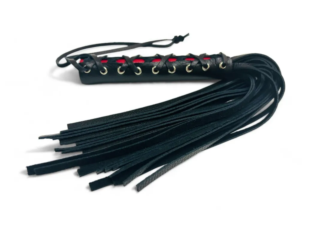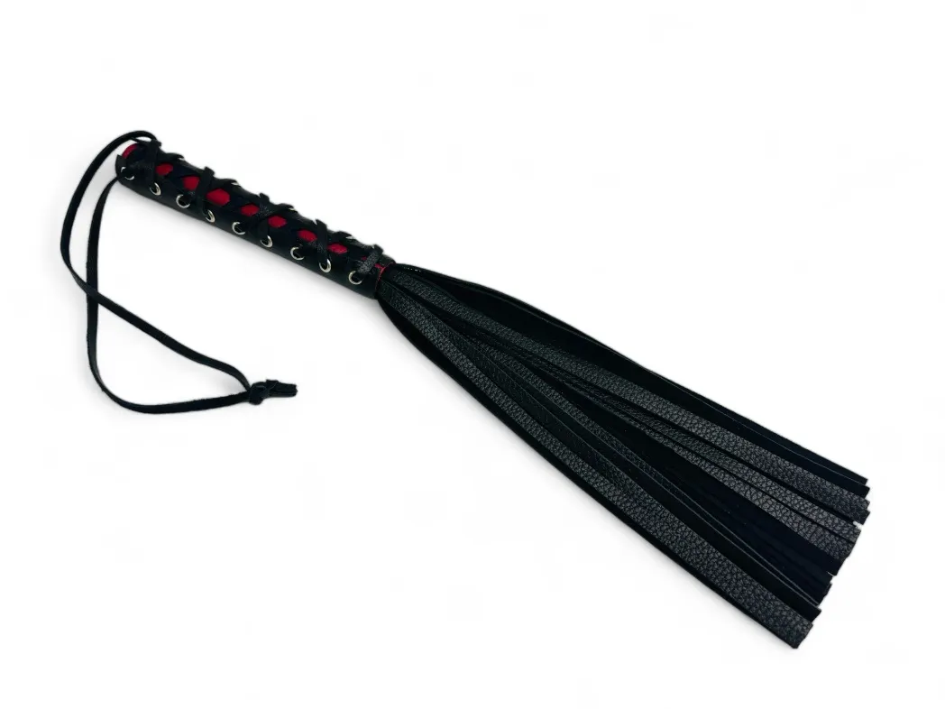 Качественная и красивая плеть Rich Arsenal понравится любителям необычных дизайнов. Изделие выполнено из натуральной кожи высокого качества, рукоятка декорирована вставкой из красной кожи и шнуровкой. Общая длина аксессуара 44см, длина хвостов 27см, их количество 25 штук. Для удобства на рукоятке имеется кожаная петелька. Эта плеть покорит своего обладателя удобством использования и красотой.