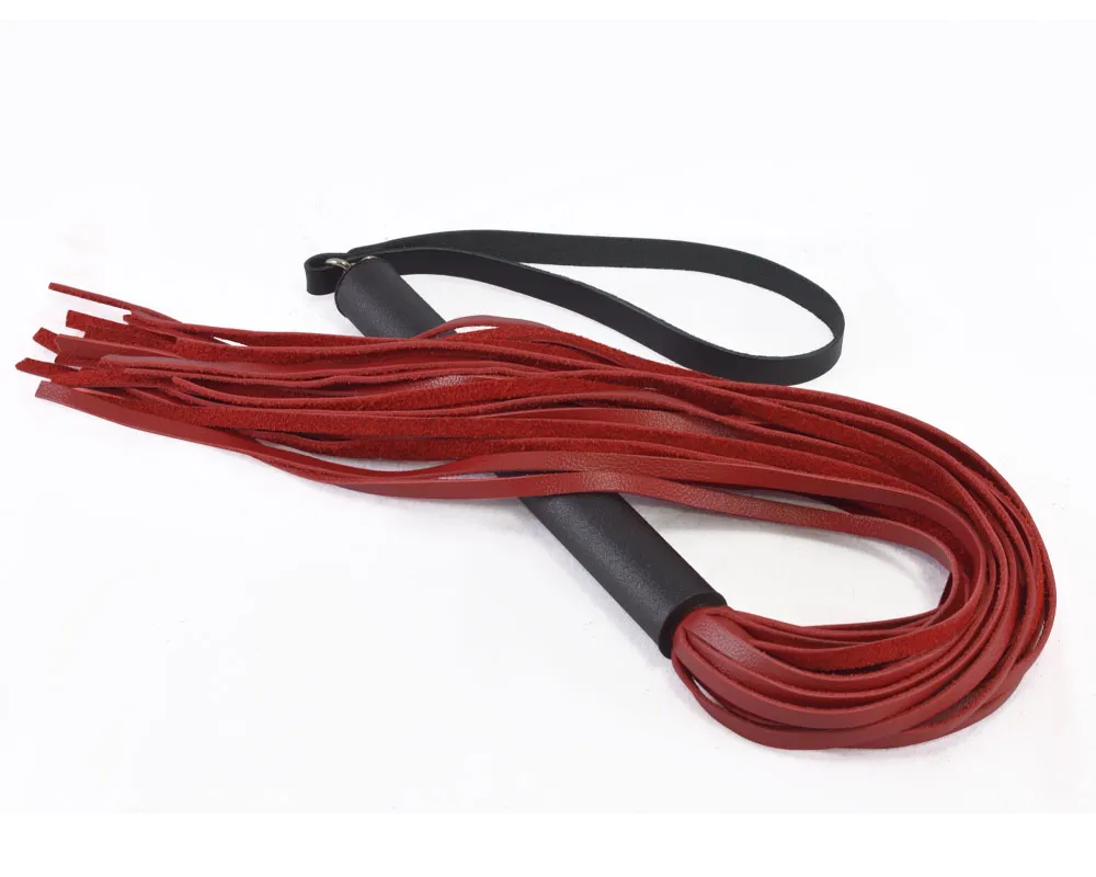 Плеть "Классика" состоит из металлической матовой рукояти (16 см) и 26-28 кожаных хвостов красного цвета, толщиной 5 мм. На торце рукояти имеется ремешо-петля. Общая длина  около 58 см.