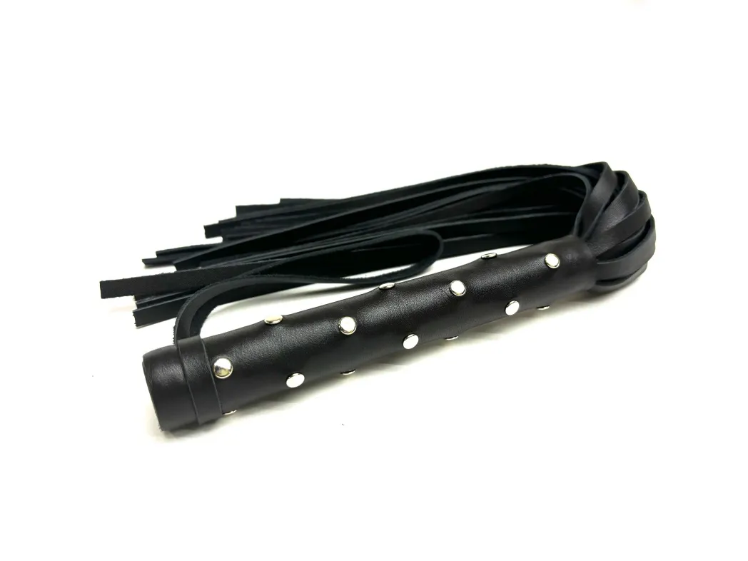 Восхитительная плеть "Звездное небо" из натуральной черной кожи - волнующий элемент для Вашей БДСМ игры. Аксессуар выполнен из качественной кожи, общая длина 43см. Плеть имеет 28 хвостов, их длина 26см. Рукоятка украшена россыпью блестящих хольнитенов, её диаметр 2,5см, для удобства имеется кожаная петелька. Плеть "Звездное небо" украсит Вашу любовную игру и подарит незабываемые приятные моменты! Материал: натуральная кожа, металл