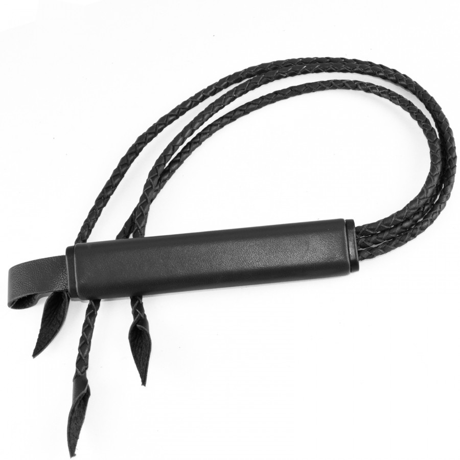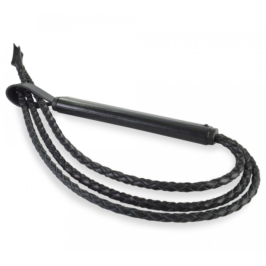 Плеть изготовлена из натуральной кожи. Имеет 3 плетеных хвоста и плоскоовальную рукоять. Цвет черный. Длина упаковки 72, ширина 5, высота 2 см. Вес брутто 124 г.