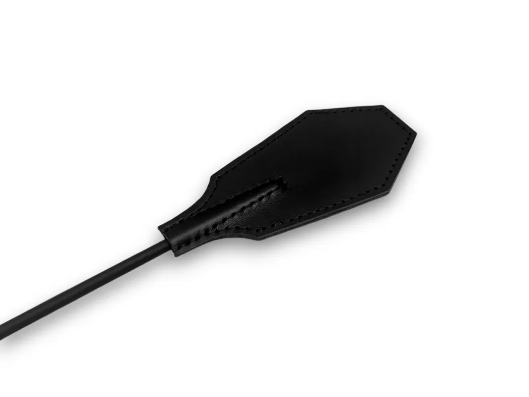 Стек Gothic charm - идеальный выбор для тех, кто любит красивые и многофункциональные аксессуары в своем арсенале. Аксессуар выполнен из качественной черной натуральной кожи, шлепок имеет необычную форму в готическом стиле. Рукоятка длиной 21см украшена роскошным плетением. Общая длина аксессуара 77см, размеры шлепка 10см х 6см. Главной изюминкой данной модели является петелька - она крепится к стеку с помощью карабина, что позволяет в любой момент снять её и прикрепить к другому аксессуару, например, к ошейнику, чтобы держать нижнего на коротком поводке. Роскошный стек для ценителей прекрасного.
