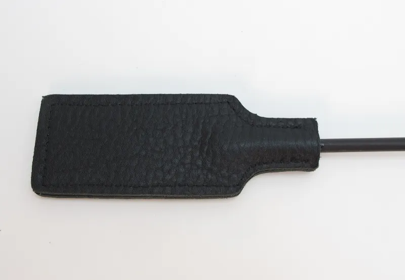 Стек сделан из прочного сердечника с оплетением из кожи. Наконечник в виде хлопушки из кожи для осуществления ударов. Также на ручке присутствует кожаная петля, которая позволяет закрепить стек при проведении наказания партнёра. Девайс отлично подходит для БДСМ игр. Мягкая и гибкая конструкция позволяет избежать повреждений тела даже при сильных ударах. Характеристики: длина БДСМ девайса составляет 73 см, хлопушка сделана из подшитой кожи, шириной 4 см, длиной 11 см, рукоятка стека жёсткая, обшита кожей. Страна - Россия.