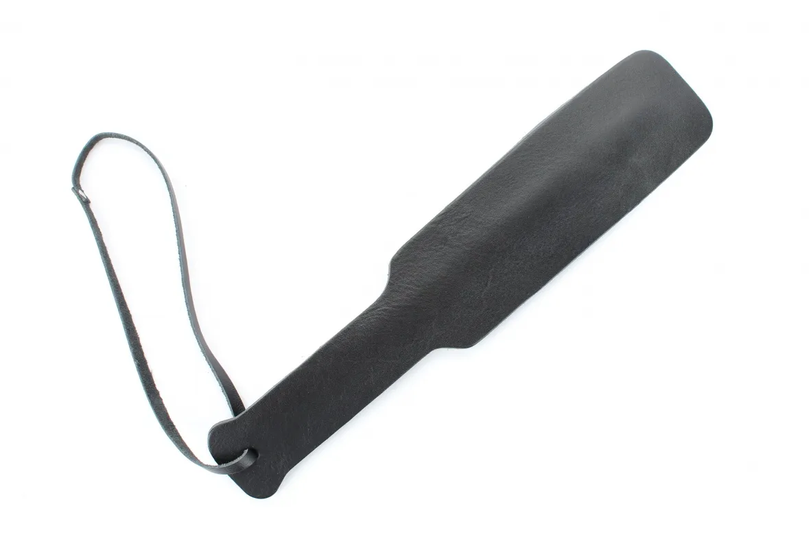 Девайс в виде кожаной пластины с ремешком. Изготовлен из натуральной кожи черного цвета. Технически прост в применении и относительно неопасен, хотя при сильном воздействии наносит очень чувствительные шлепки. Без упаковки.