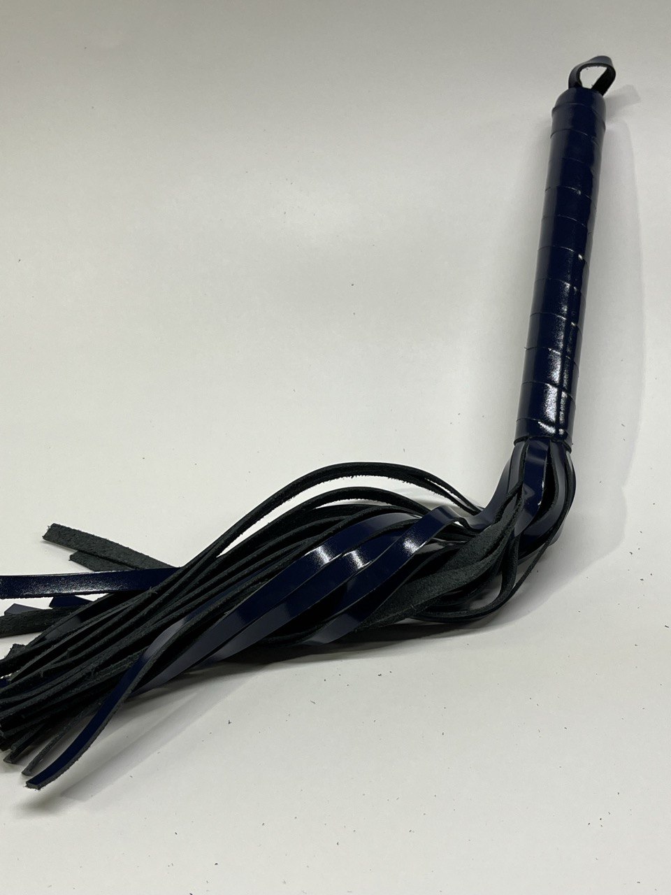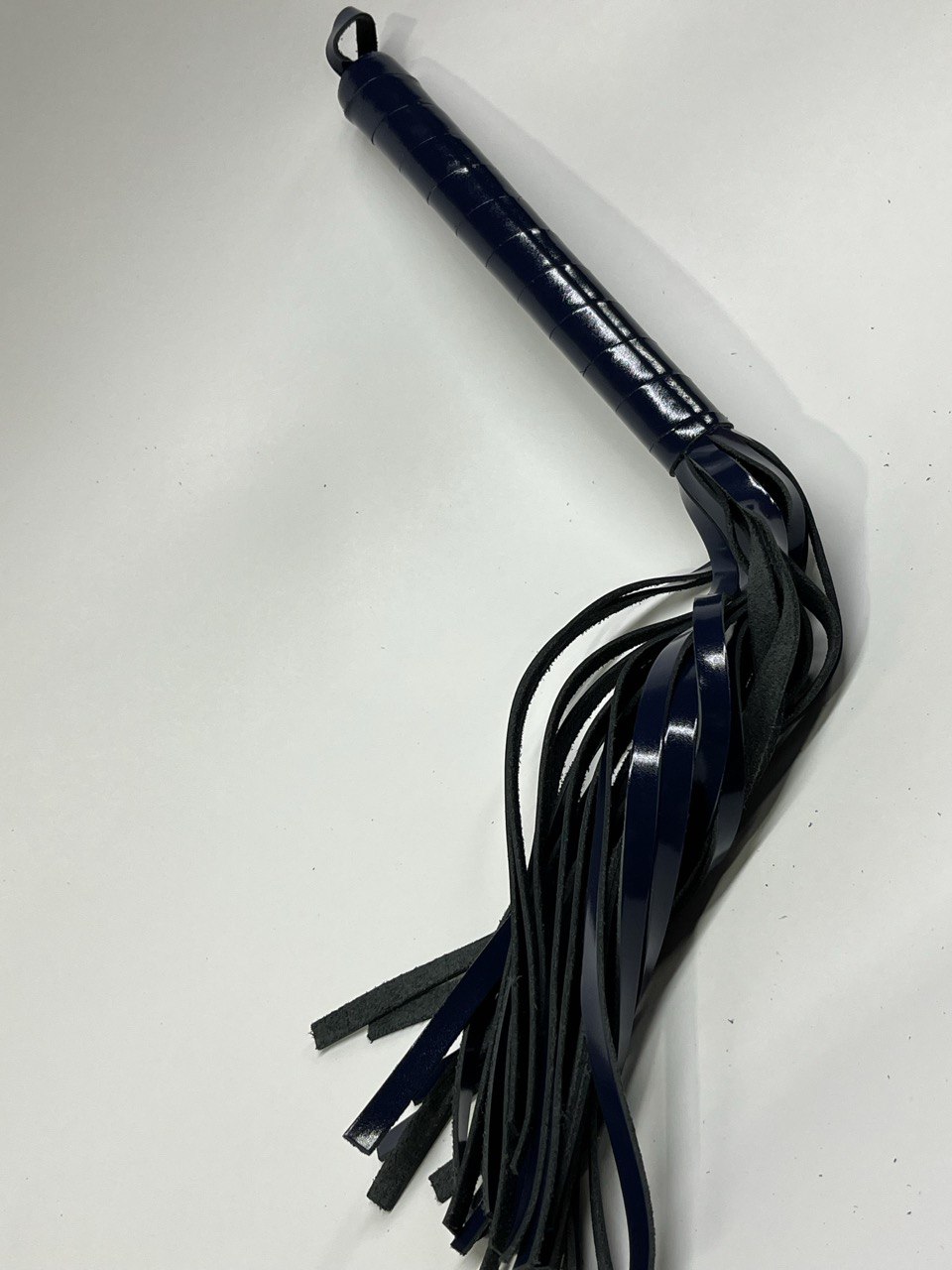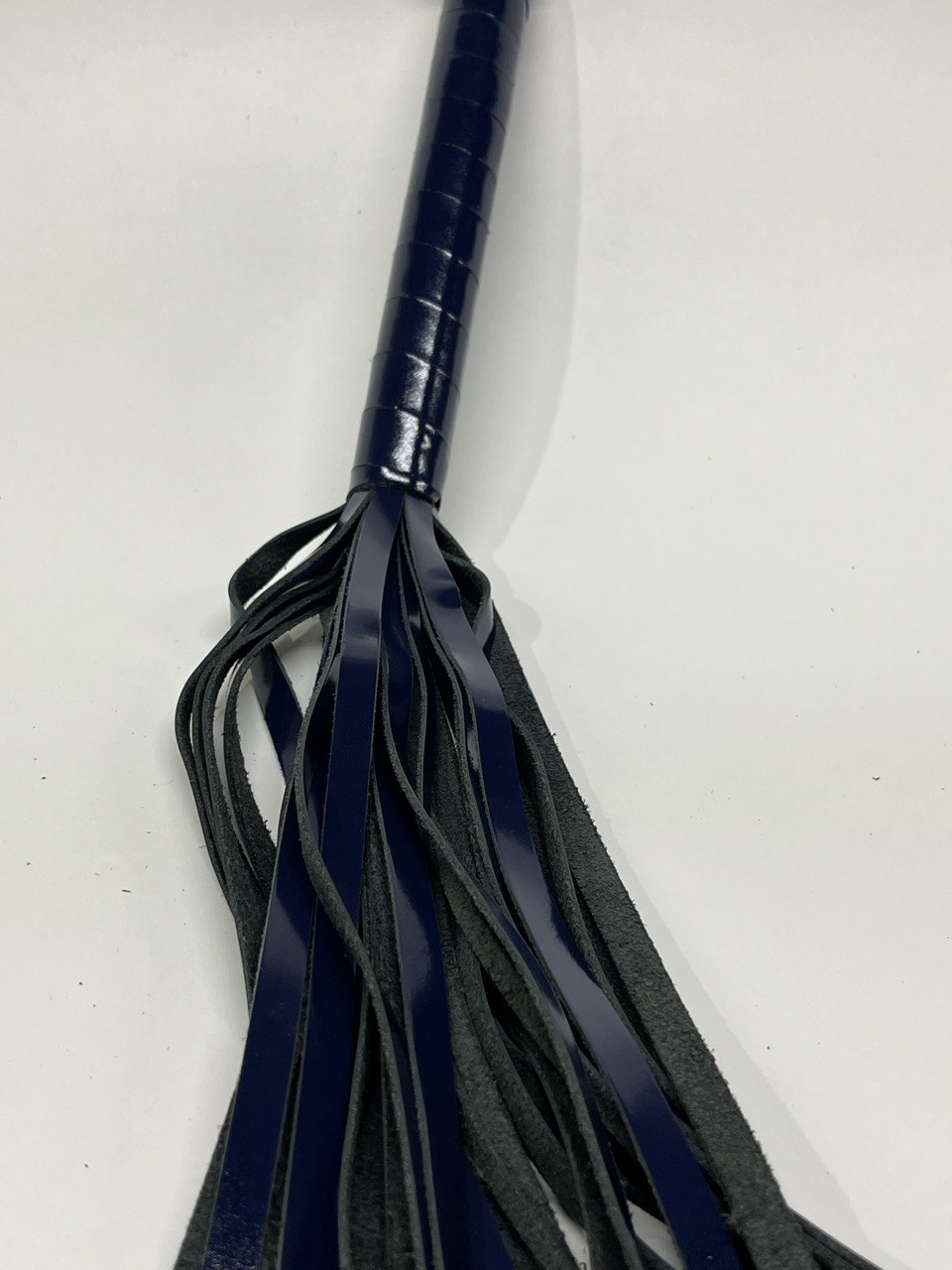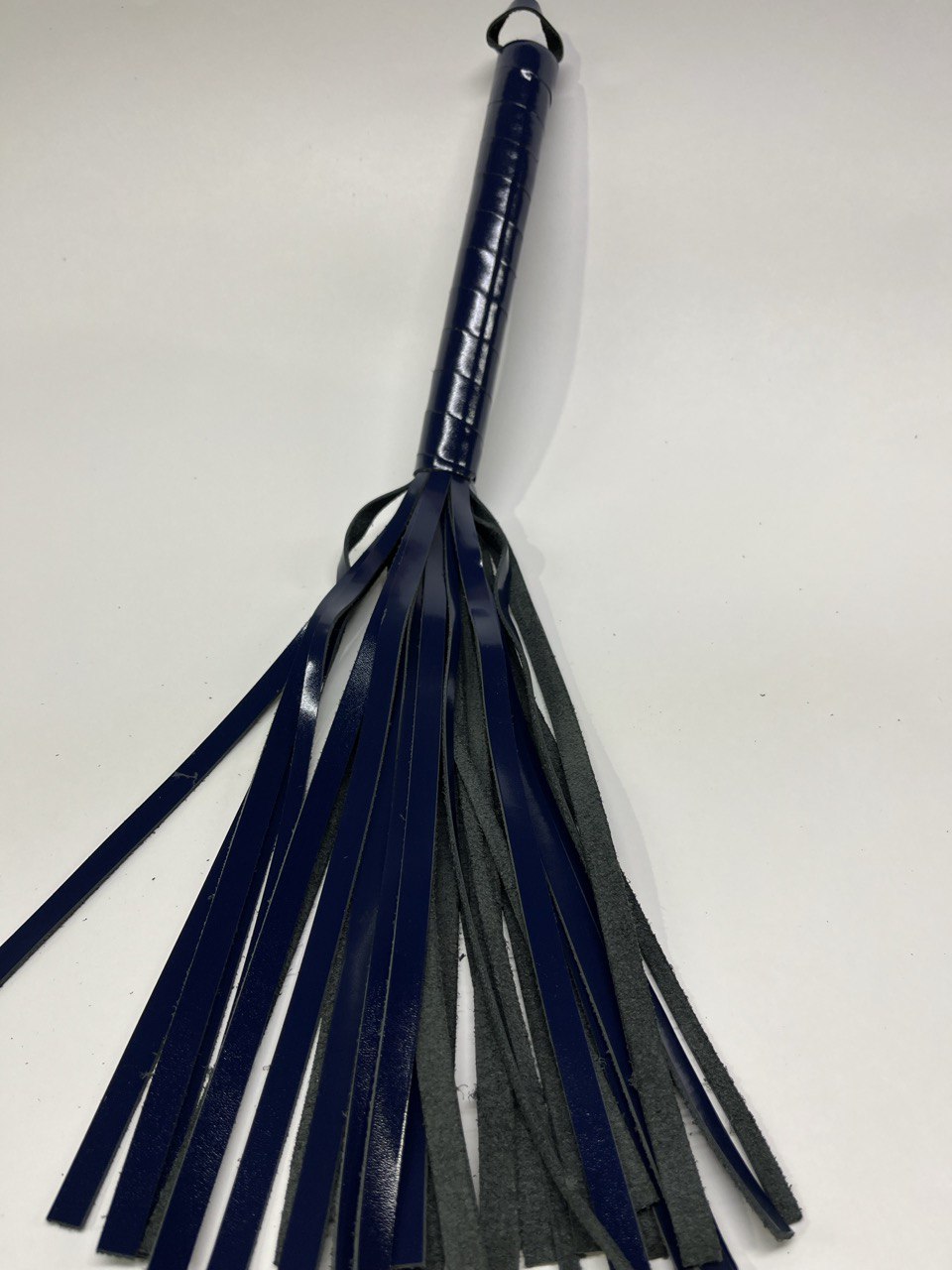 Ручка из кожи удобно лежит в руке. Мягкие замшевые хвосты могут послужить для мягкого поглаживания в качестве прелюдии, или для разогрева, порка получится мягкой, но ощутимой. В чьих руках эта плетка, тот и устанавливает правила.