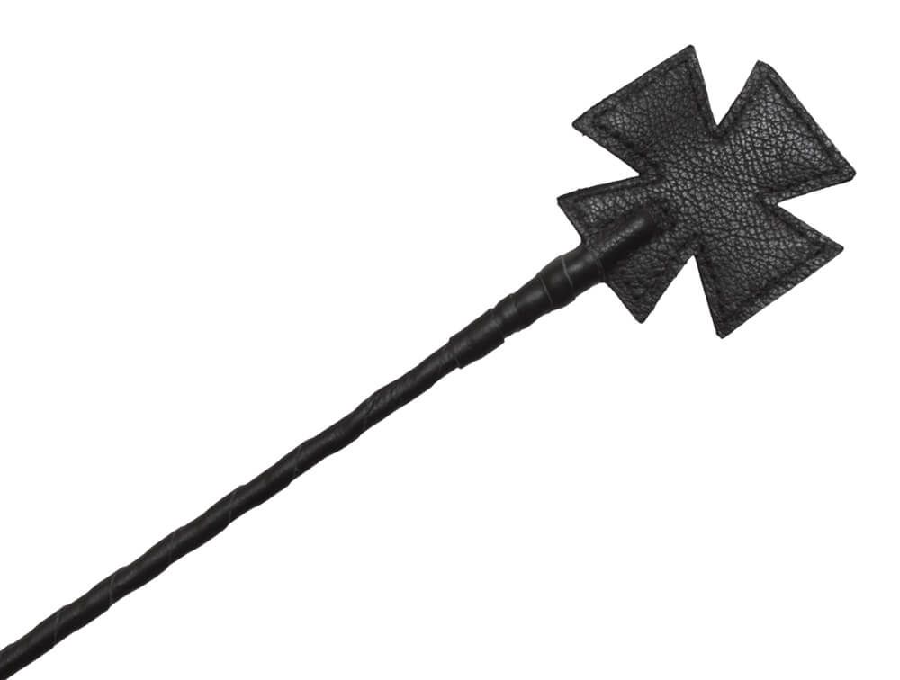 У этого стека гибкое основание, овитое черными лакированными полосками, и наконечник в виде креста длиной 10 см. Также у стека есть удобная рукоять с петлей для надевания на руку.