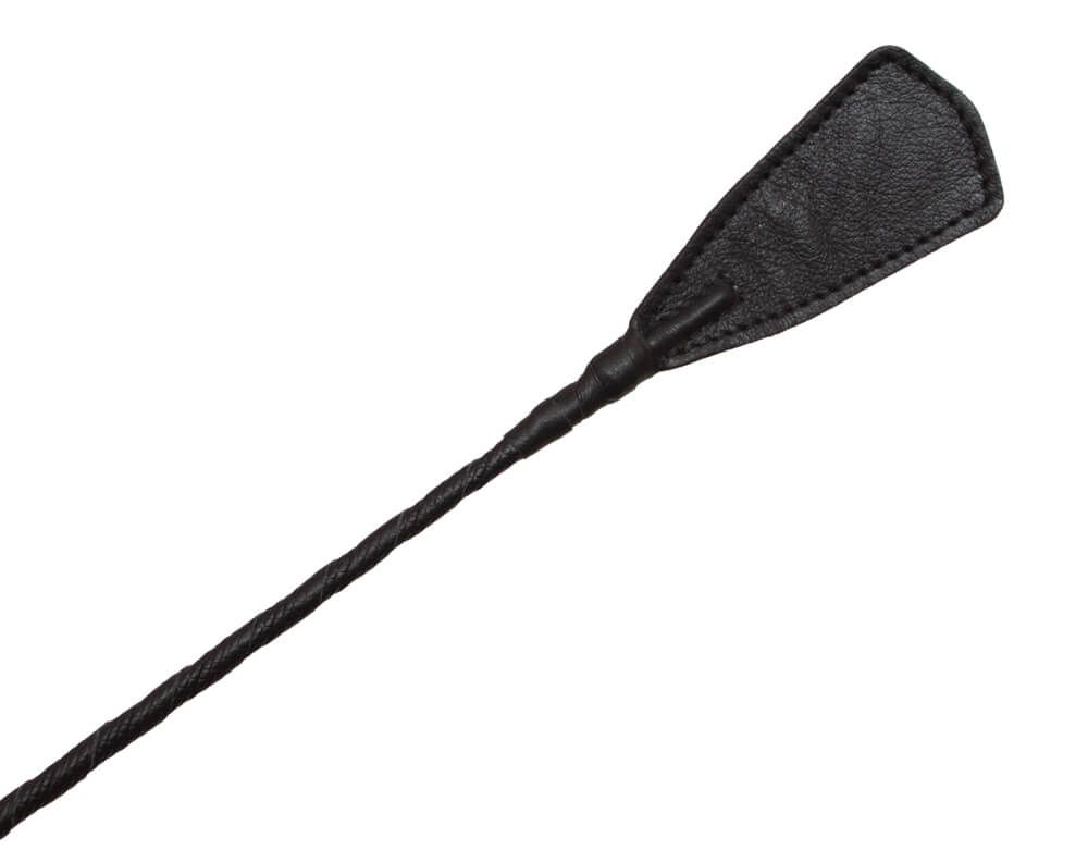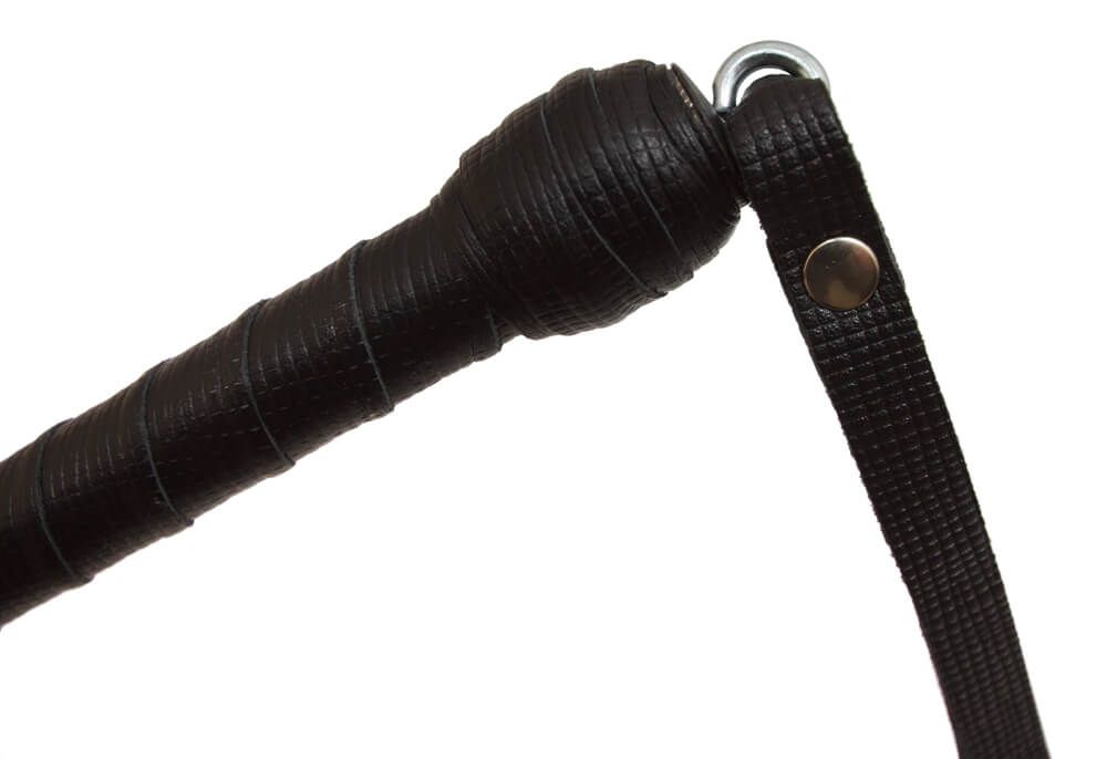 Этот стек состоит из гибкой основы, овитой натуральной кожей черного цвета, наконечника длиной 10 см и удобной рукояти с петлей для надевания на руку.