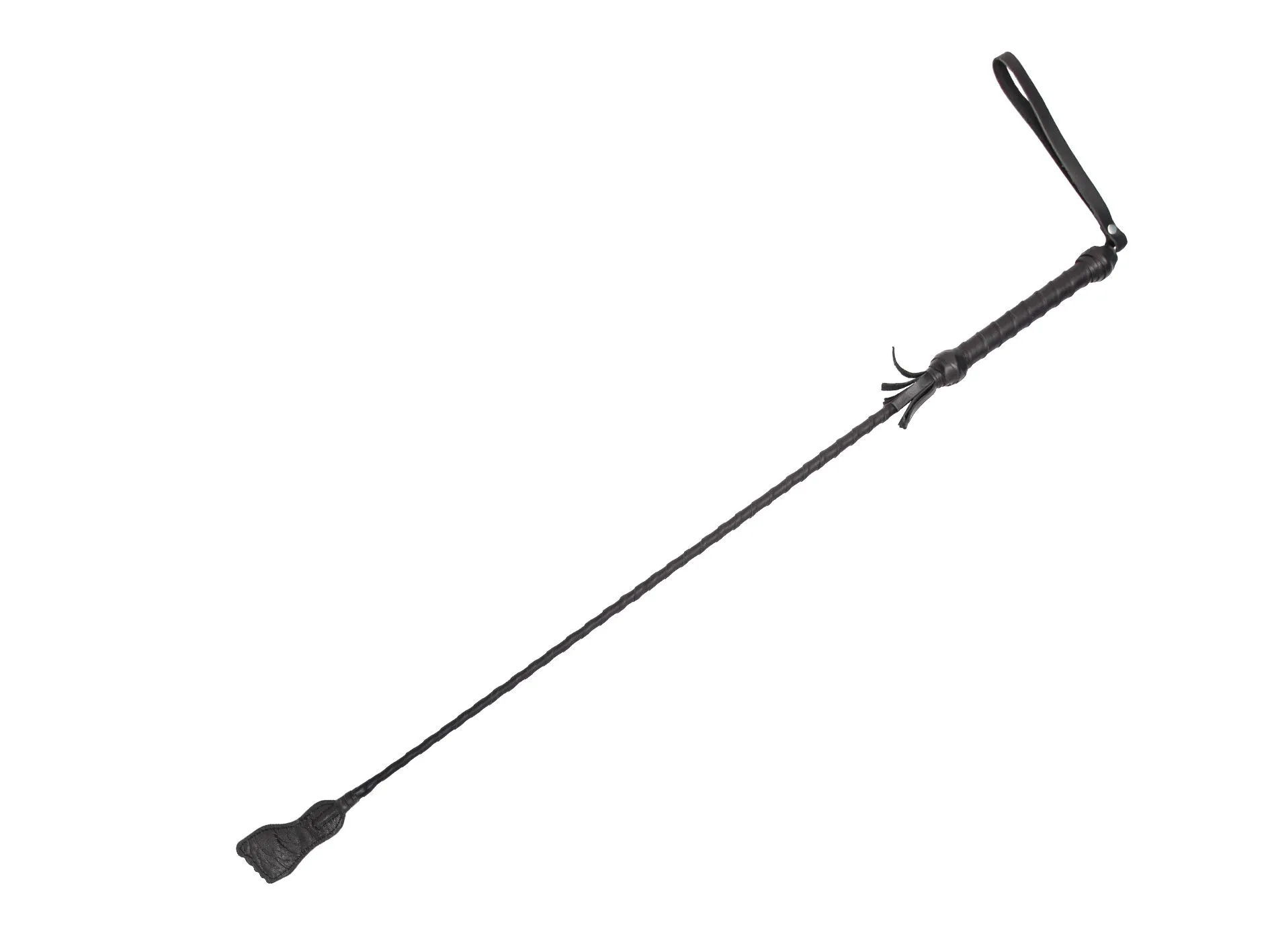 Этот стек состоит из гибкой основы, овитой натуральной кожей черного цвета, наконечника длиной 10 см и удобной рукояти с петлей для надевания на руку. Данный аксессуар для игр BDSM возможно применять для ласковых поглаживаний, чтобы разогреть партнера, или для более ощутимых ударов. Каждый удар этого девайса будет нежно бить по коже и разносить удар по всему телу, отдаваясь приятными возбуждающими волнами. Также использовать этот длинный стек можно и в качестве указки. Развлечения с элементами BDSM отлично разнообразят сексуальные игры с партнером, сделав их насыщеннее и ярче!