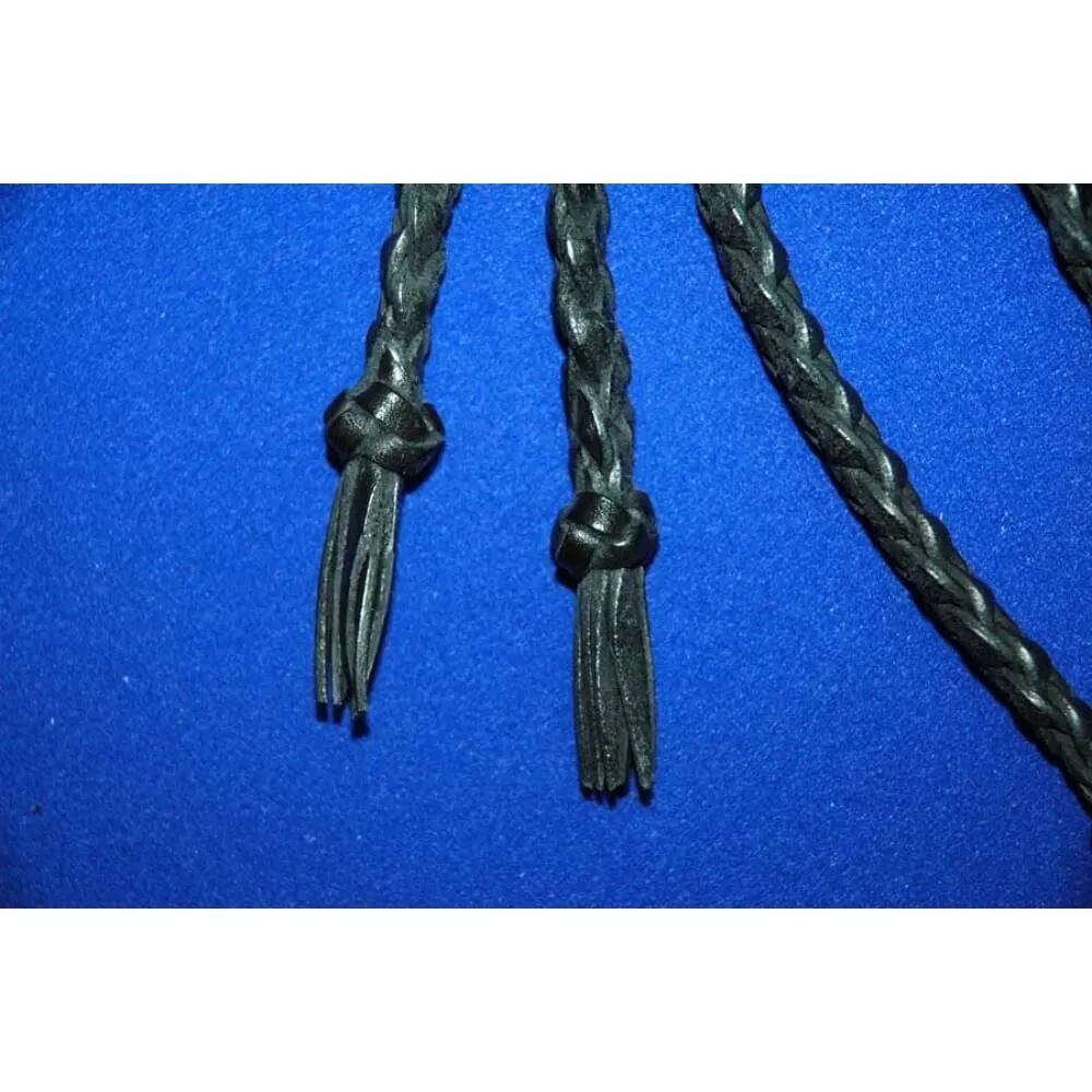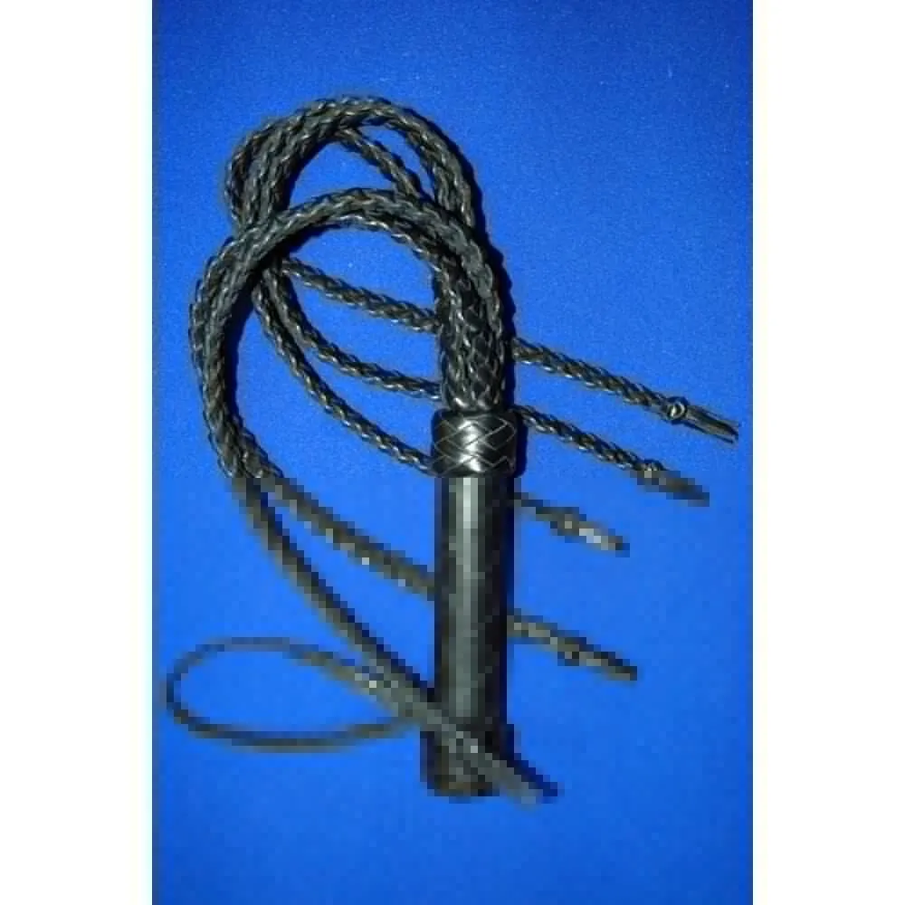 Флоггер "Квинтовая жесть" длиной 700 мм сделан из натуральной кожи. Кожаная плетенная ручка имеет специальную петельку для руки. Флоггер состоит из пяти хвостов, у которых есть необычное 6-ти полосное двойное плоское плетение с эллипсным профилем в местах пересечения и китайскими узелками с кисточками на концах. Применяется на уже разогретом теле. Имеет сильное, но не жесткое воздействие.