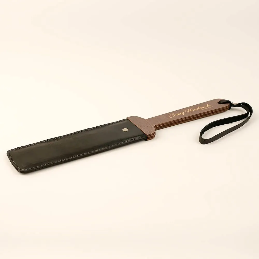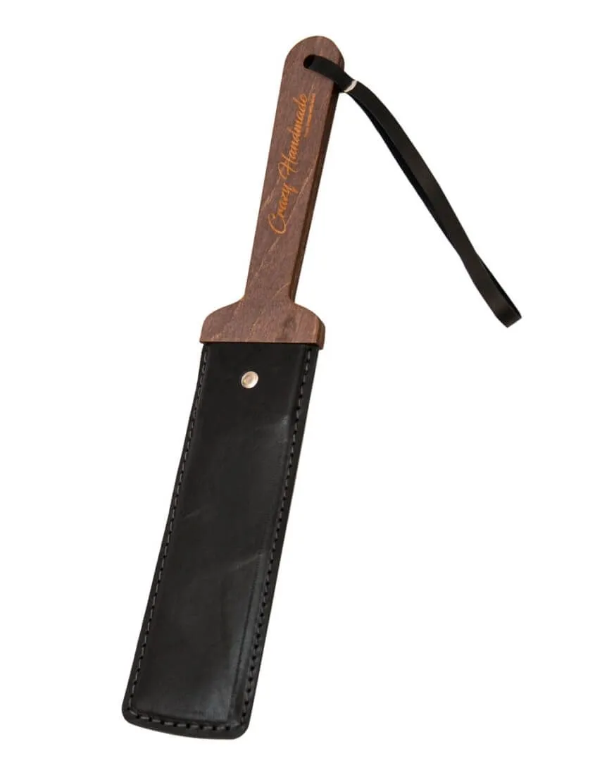 Эта шлепалка представляет собой гибкий паддл, выполненный из натуральной кожи черного цвета и дерева. С таким девайсом Ваши игры с элементами БДСМ станут еще более страстными и полными острых ощущений. Отшлепайте своего партнера, нанося ощутимые удары, чтобы показать ему его место и заставить повиноваться. Или же поощрите его нежными поглаживаниями за хорошее поведение. На ручке имеется кожаная петелька для запястья, благодаря которой паддл не выскользнет из Ваших рук.