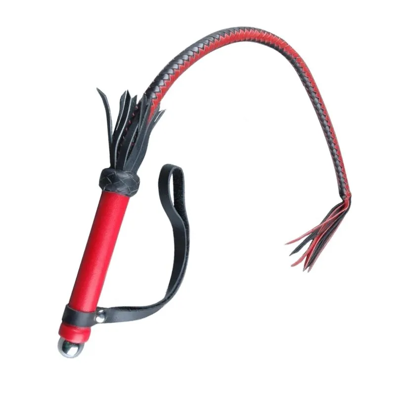 Плетка "Стегалка-погонялка" от бренда Beastly сделана из натуральной кожи черного и красного цветов. Она выполнена в технике четырехполосного плетения и имеет на конце узелок с кисточкой. Ручка плетки с круглым металлическим навершием обтянута красной кожей, на ней есть плетеный ограничитель и петля для фиксации на руке. Используйте этот аксессуар во время игр с элементами БДСМ, чтобы получить острые, но возбуждающие ощущения от страстной порки.