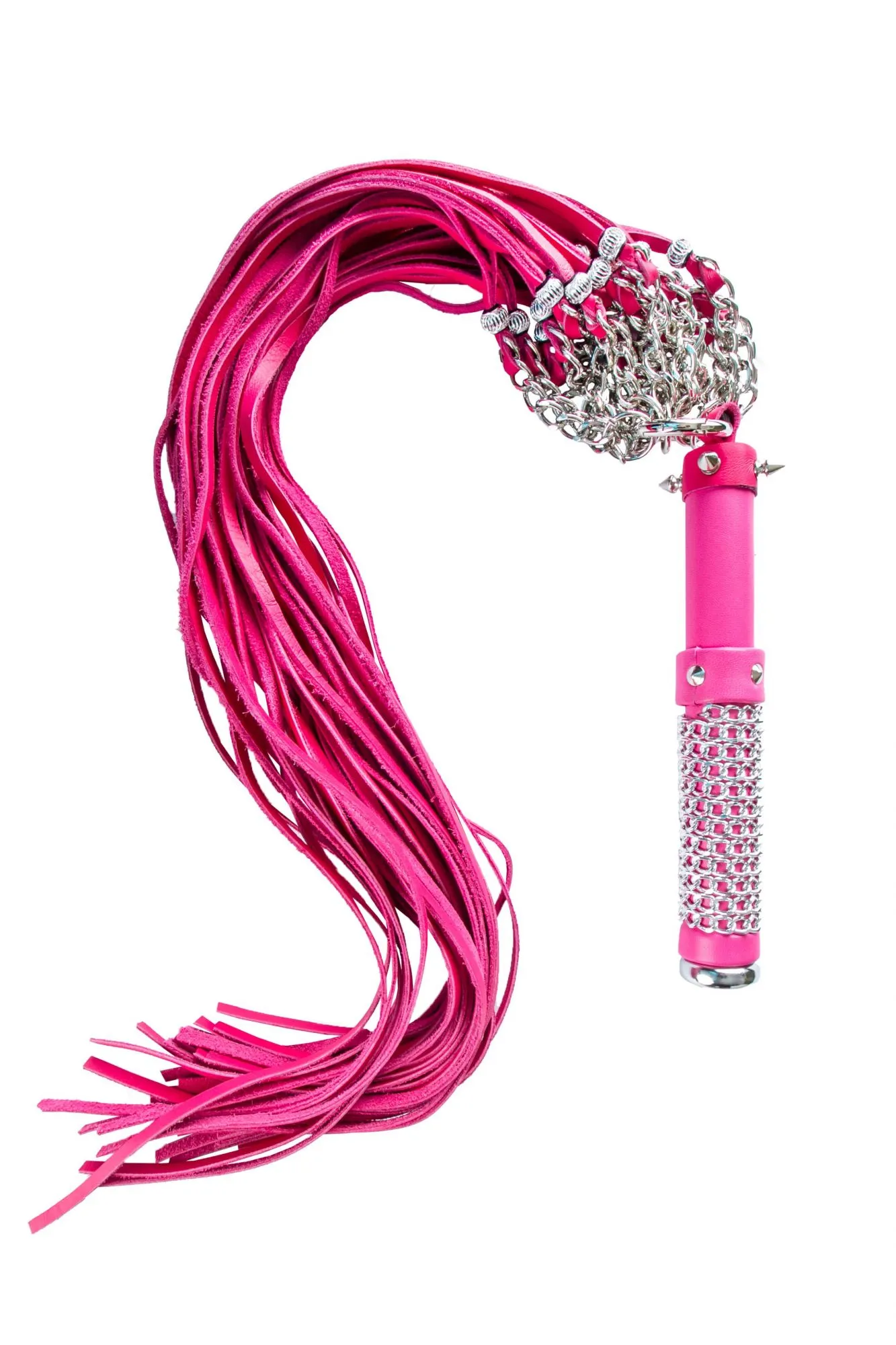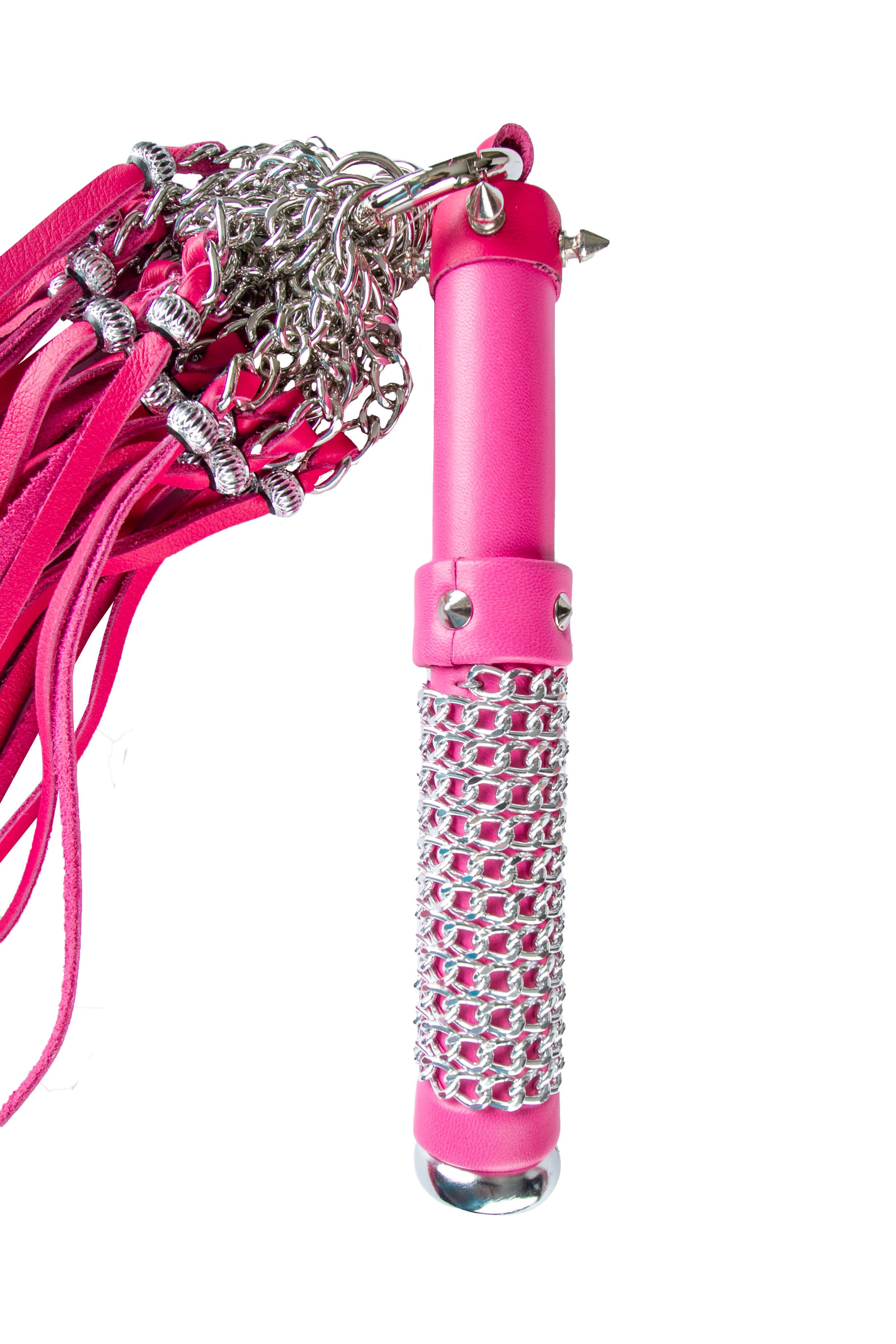 - ручка длиной 21 см, с небольшими шипами и цепью с алмазной гранью; место хвата обвито цепочкой, поэтому плеть удобно лежит в руке и помогает контролировать силу и скорость удара