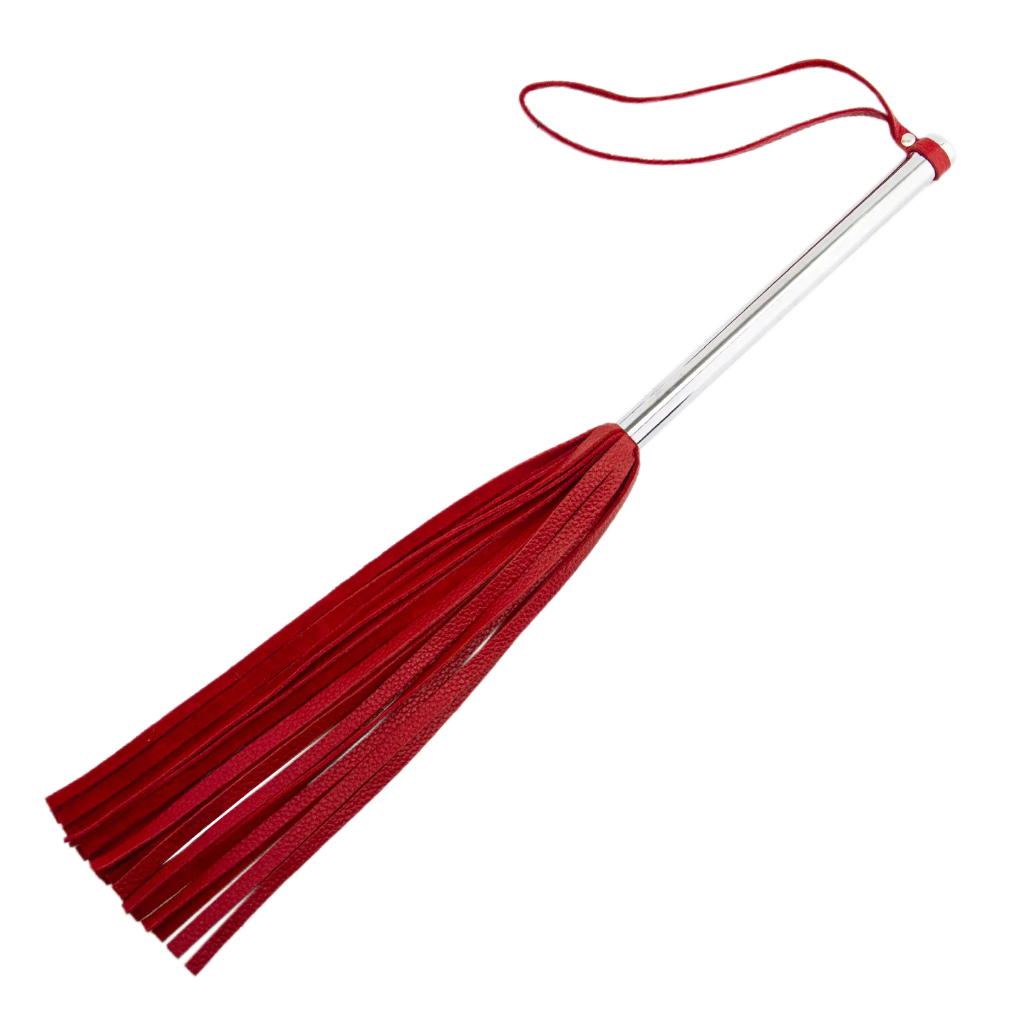 Флоггер выполнен из натуральной кожи черного цвета, а ручка - из гладкого металла серебристого цвета. На ручке имеется кожаная петелька для запястья, благодаря которой плеть не выскользнет из Ваших рук.