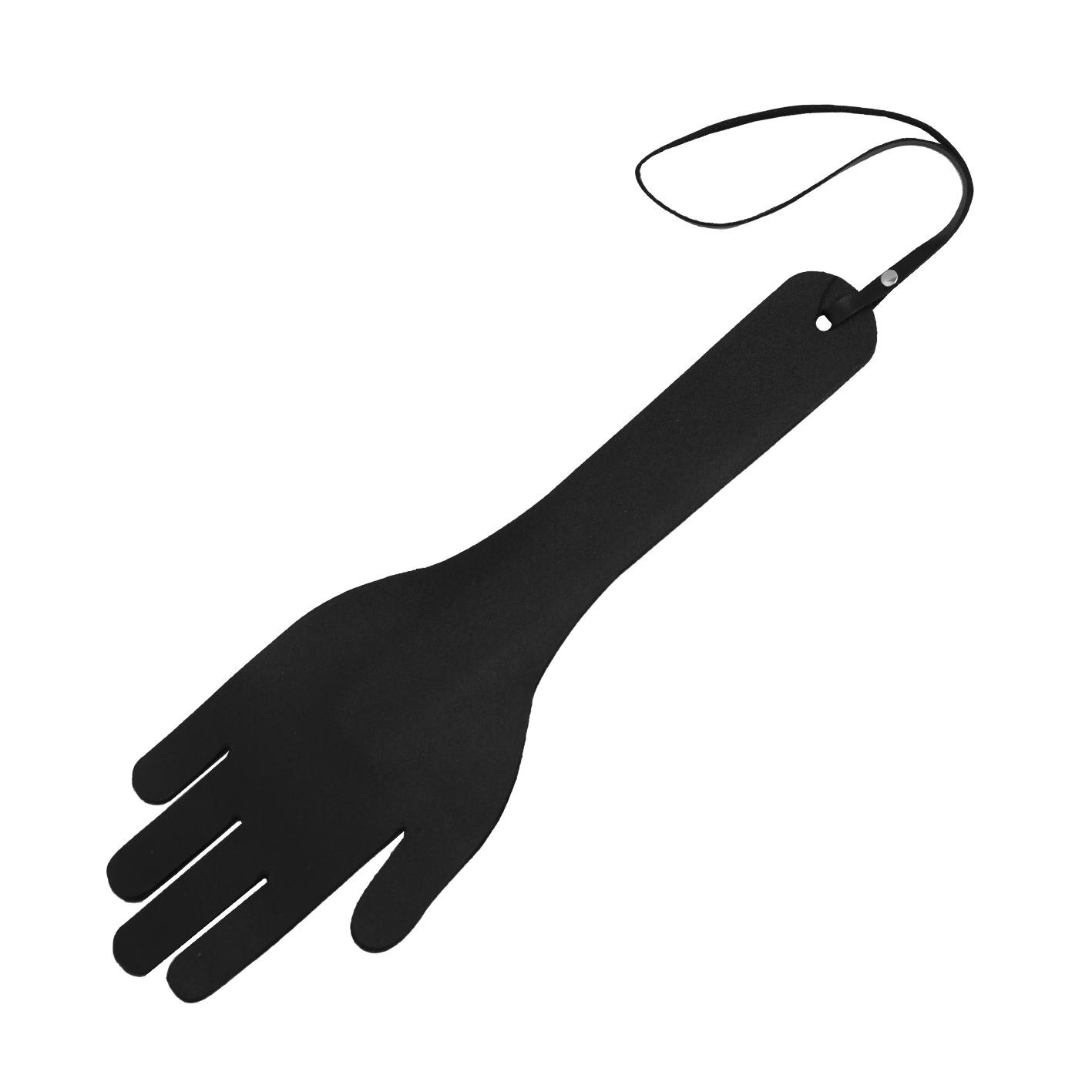 Эта шлепалка представляет собой гибкий паддл, выполненный из натуральной кожи черного цвета в форме руки. С таким девайсом Ваши игры с элементами БДСМ станут еще более страстными и полными острых ощущений. Отшлепайте своего партнера, нанося ощутимые удары, чтобы показать ему его место и заставить повиноваться. Или же поощрите его нежными поглаживаниями за хорошее поведение. На ручке имеется кожаная петелька для запястья, благодаря которой паддл не выскользнет из Ваших рук.