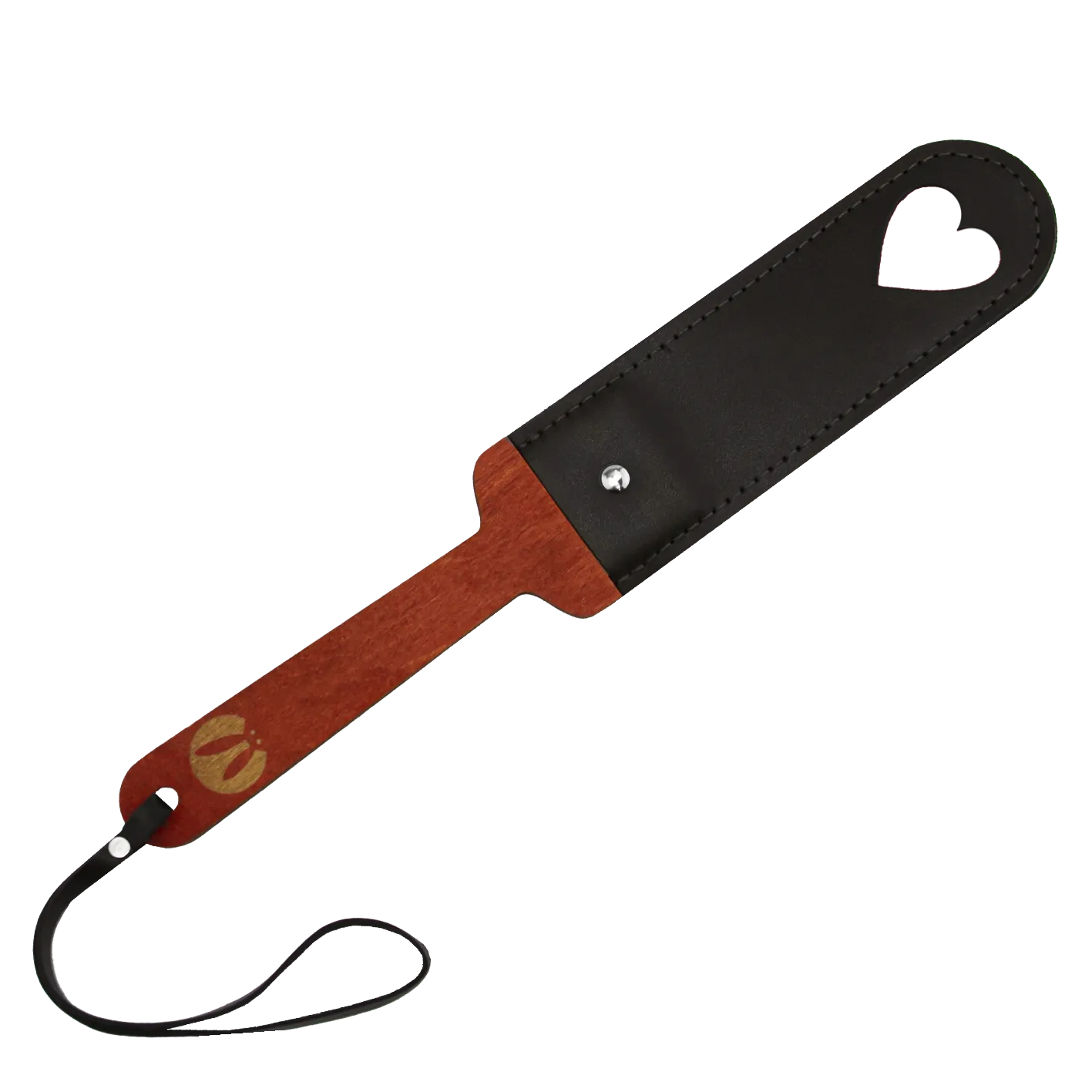 Эта шлепалка представляет собой гибкий паддл, выполненный из натуральной кожи черного цвета и дерева. С таким девайсом Ваши игры с элементами БДСМ станут еще более страстными и полными острых ощущений. Отшлепайте своего партнера, нанося ощутимые удары, чтобы показать ему его место и заставить повиноваться. Или же поощрите его нежными поглаживаниями за хорошее поведение. На ручке имеется кожаная петелька для запястья, благодаря которой паддл не выскользнет из Ваших рук.