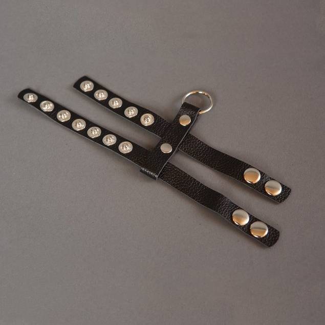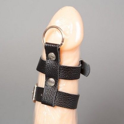 Сбруя на фаллос от компании Подиум изготовлена из натуральной мягкой кожи черного цвета. Такой аксессуар будет интересен тем, кто предпочитает игры с элементами БДСМ или хочет попробовать что-то новое в постели. Сбруя состоит из двух кожаных полосок, одну из которых можно одеть на пенис, а вторую - под мошонку. Полоски соединены между собой. Их размер можно регулировать, так как они застегиваются на кнопки. У сбруи также есть металлическое колечко, к которому при помощи карабина можно присоединять различные аксессуары.