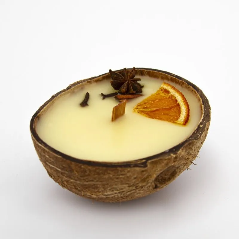 Наполните свой дом теплом и мягким светом при помощи свечи в кокосовой скорлупе с уютным ароматом апельсинового пунша. Кокосовый воск медленно плавится, заставляя душистое апельсиновое масло отдавать свой аромат. Деревянный фитилёк, словно камин, издаёт при горении треск и погружает вас в состояние релакса и комфорта.