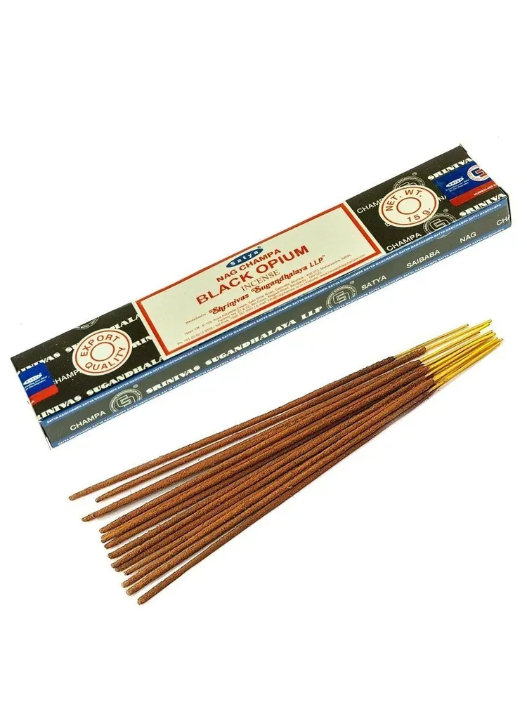 Благовоние Черный опиум обладает насыщенным горьковато-терпким ароматом, балансирующими и успокаивающими свойствами, а также положительно влияет на нервную и сердечно-сосудистую систему.