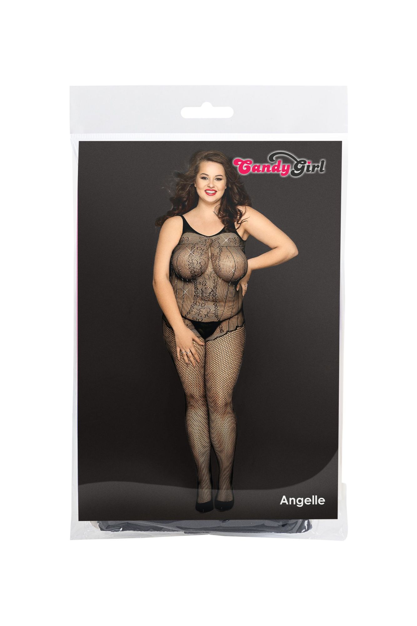Эластичный бесшовный комбинезон из сетки c имитацией боди и чулок Candy Girl® Angelle спереди равномерно украшен россыпью серебристых страз в зоне груди и талии. Вырез в интимной зоне, стринги и усиленные мыски чулок обеспечивают комфорт и эстетичность при использовании.