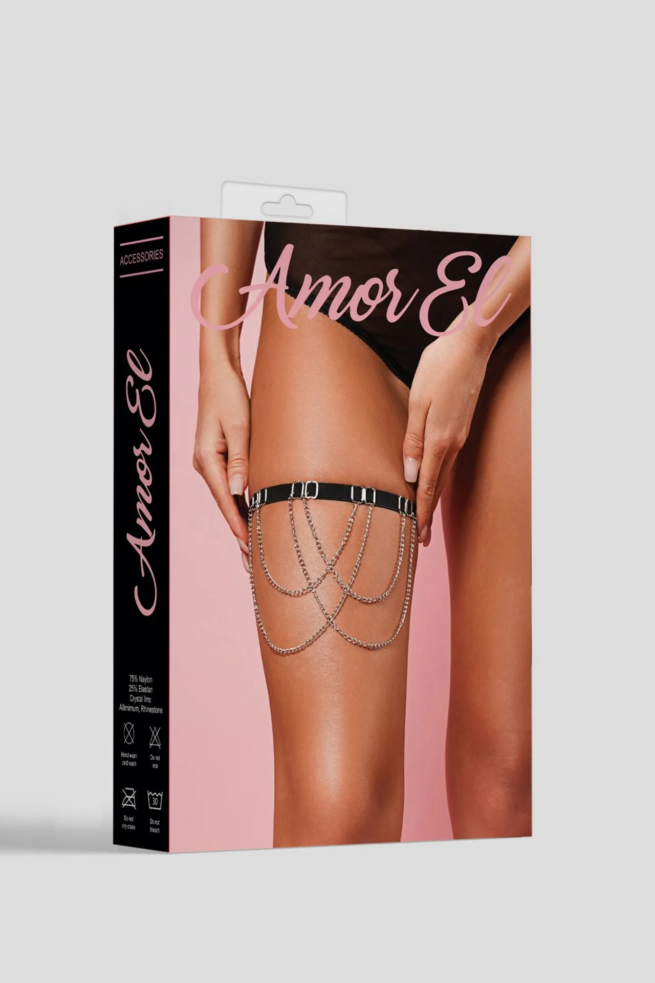 Подвязка с декоративными цепочками цепочками с регуляторами на резинке в едином размере (XS-L)