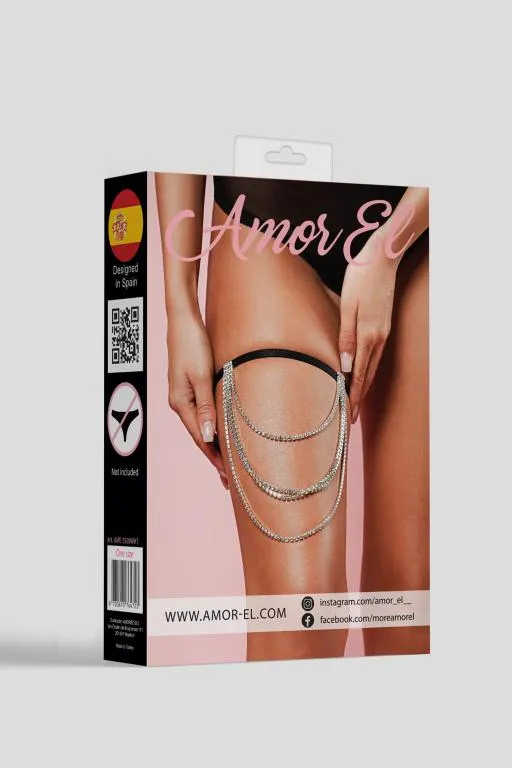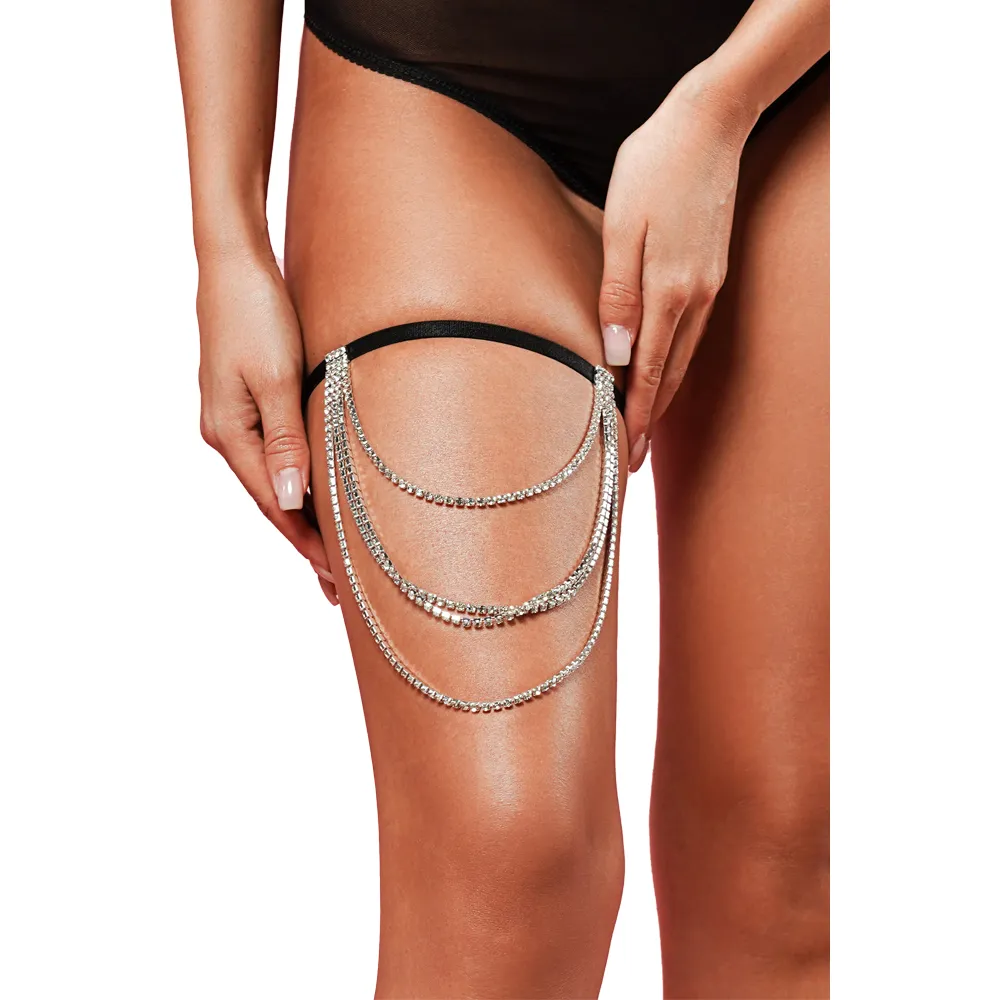 Подвязка с декоративной цепочкой в кристаллах с регуляторами на резинке в едином размере (XS-L)