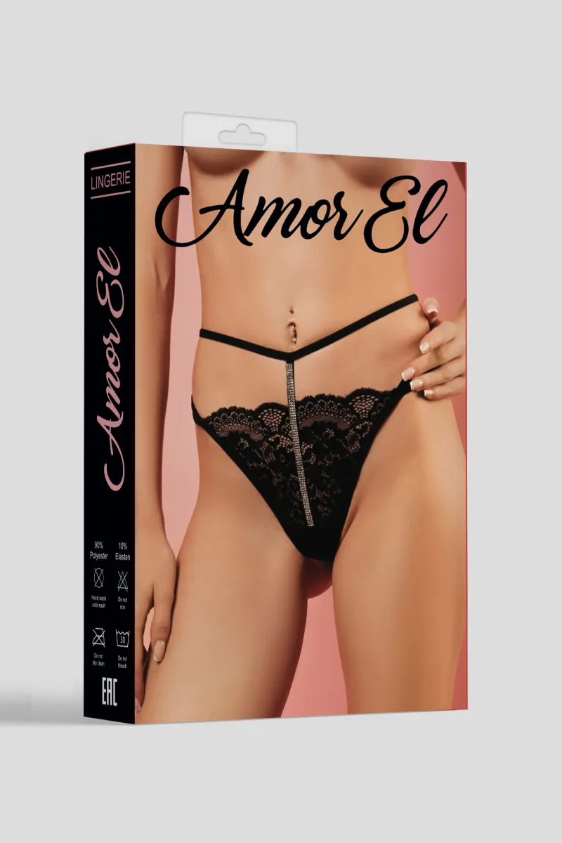 Соблазнительные трусики-стринги с декоративной полоской из кристаллов и резинкой на талии. Их лаконичность и изящность добавит шик в ваш образ.