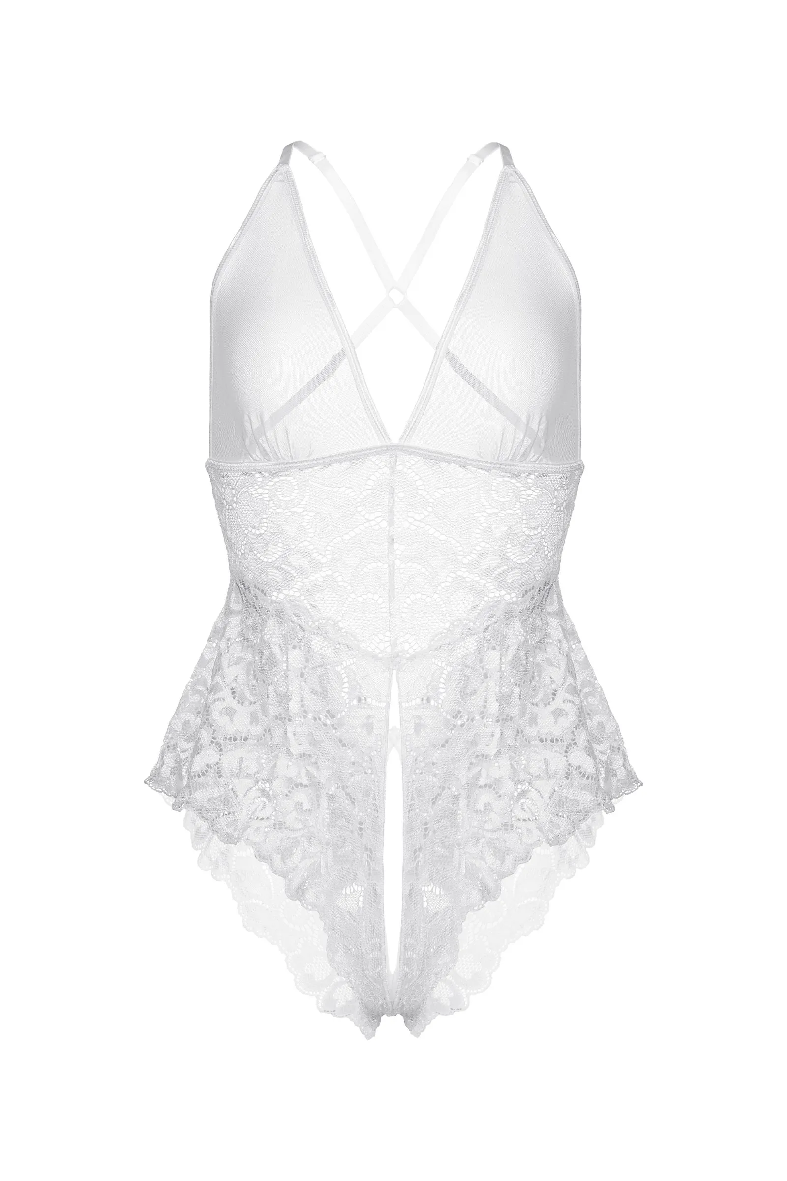 Боди Senna от Candy Girl® с прозрачным бюстом, перекрестнымБоди Senna от Candy Girl® с прозрачным бюстом, перекрестными регулируемыми бретелями и кружевными оборками подчеркнет ваше нежное романтичное настроение. Легкий перламутровый блеск окантовки и кружева выгодно оттенит естественный цвет кожи.