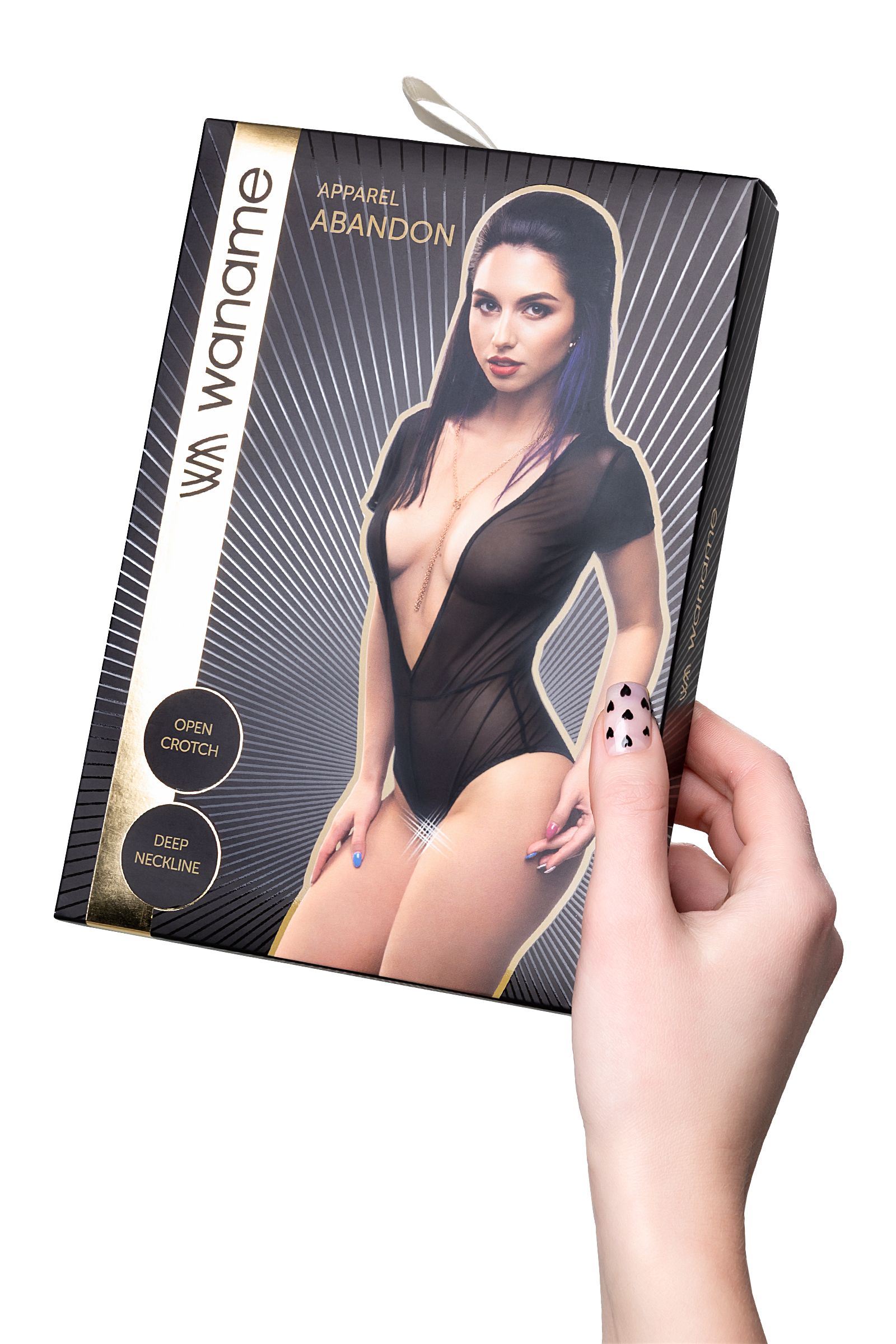 Линия провокационного эротического белья WANAME® Apparel – для женщин, которые хотят наслаждения и не скрывают этого. Эротическое боди с короткими рукавами «Эба́ндэн» (англ. Abandon – «Раскрепощенность») из тонкой прозрачной эластичной сетки облегает фигуру, ощущается невесомым, не сковывает движений, но визуально меняет силуэт. Шелковистая поверхность материала дарит приятные ощущения при прикосновении. Современные элементы дизайна боди тешат женское самолюбие. Аккуратные швы и вытачки акцентируют внимание на плавных изгибах тела и создают силуэтную посадку. Глубокие вырезы в зоне декольте и на спинке позволяют легко освободить грудь. Лаконичный крой и эротический доступ дополняют чувственный образ. Модели белья Waname® Apparel эксклюзивны, разработаны и произведены в России с учетом предпочтений российских покупательниц.