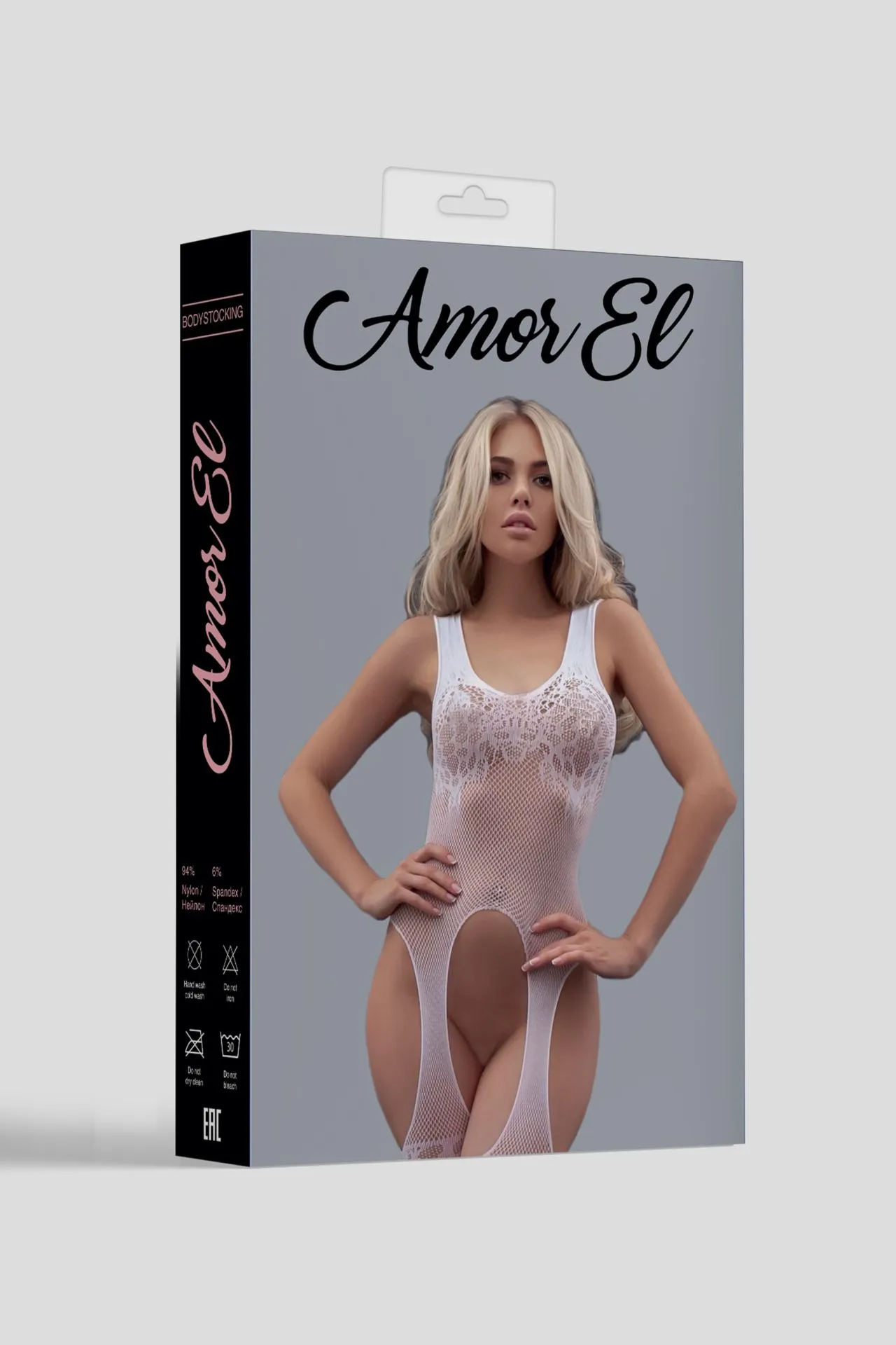 Blanca - боди-комбинезон с имитацией чулок. Дизайн выполнен в виде контрастного полупрозрачного рисунка.