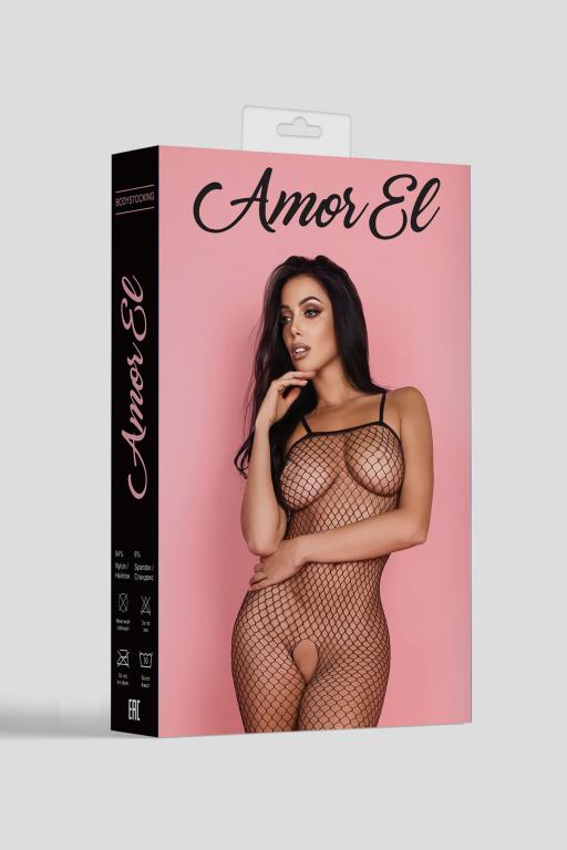 Боди-комбинезон на бретельках с открытым доступом. Дизайн выполнен в виде крупной сетки.