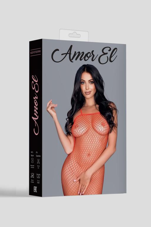 Боди-комбинезон на бретельках с открытым доступом. Дизайн выполнен в виде крупной сетки.