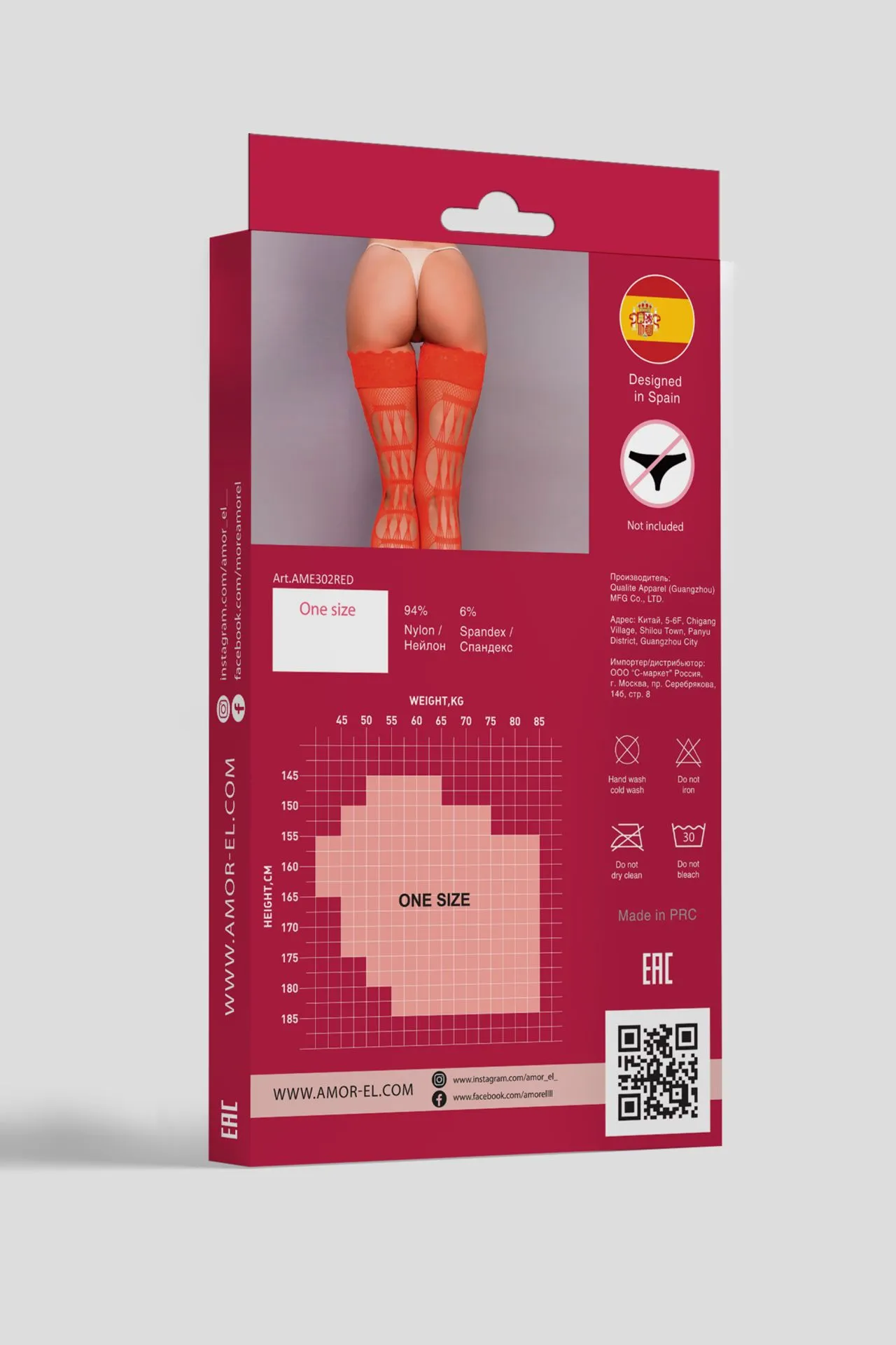 Чулки в мелкую сетку ROSA VINTAGE с рисунком сзади S/L красные
