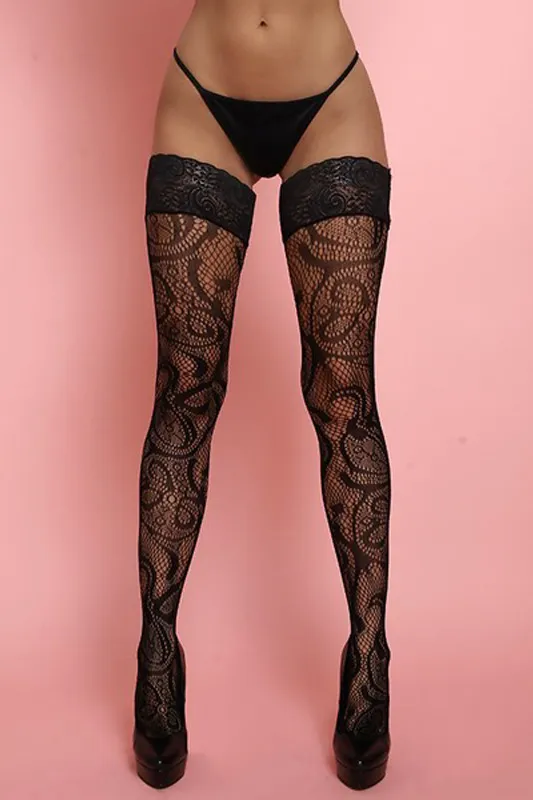 Чулки c ажурным рисунком, сверху украшены кружевной резинкой на силиконе. Плотность эквивалентна 20 ден. Благодаря использованию большего количества нейлона, белье сохраняет очертания, не деформируется, растягивается и выгодно облегает фигуру. А за счет эластана, даже после сильного растяжения, оно не деформируются, и всегда принимает исходную форму.