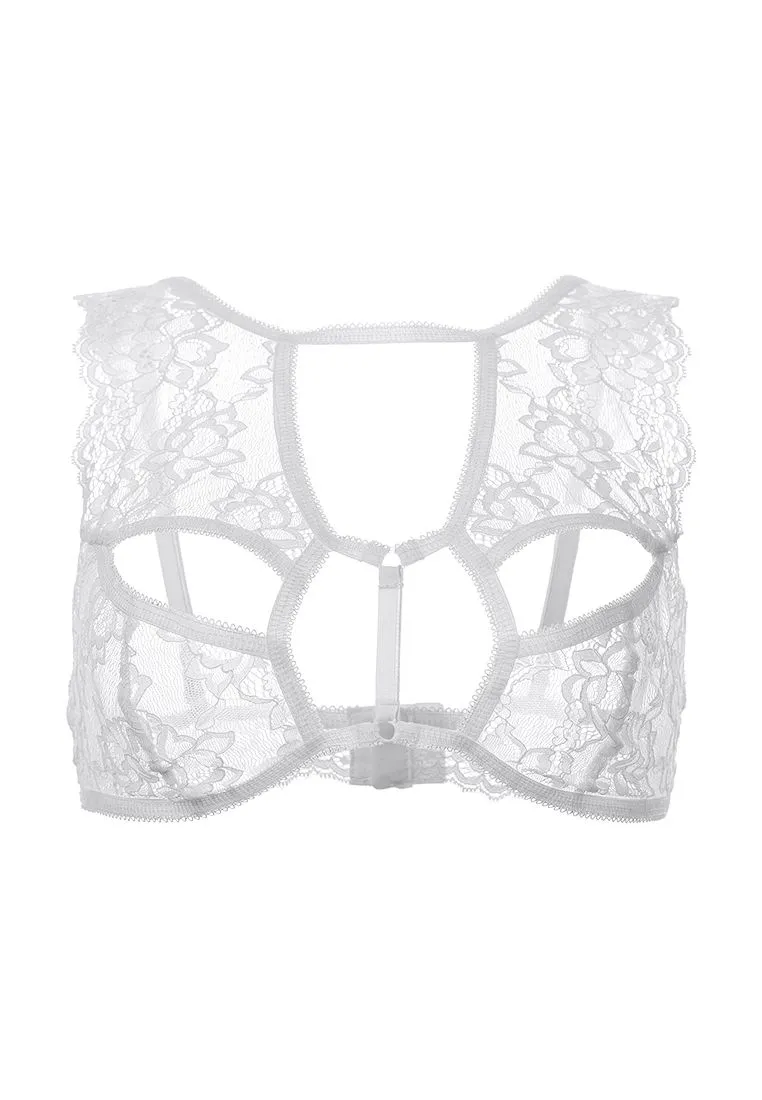 Бралетт. Мягкий кружевной топ с декоративными вырезами и перемычками. Регулируемые бретели. Двухрядная застежка на спине.