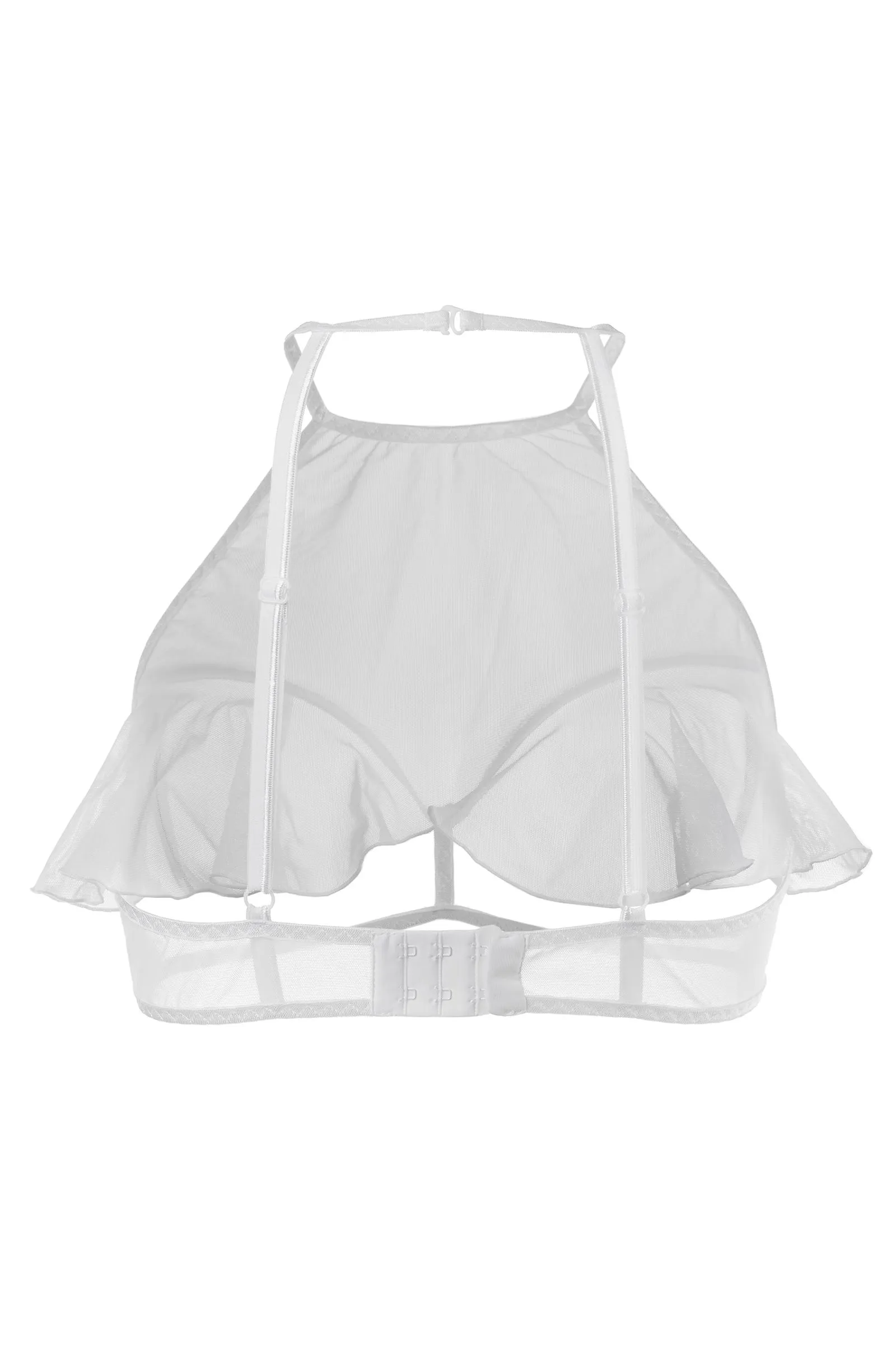 Откровенный бралетт Karen от Erolanta® не оставит вашего мужчину равнодушным. Мягкий топ из невесомой эластичной сетки приковывает взгляд к линии декольте. Очаровательные воланы игриво открывают доступ к груди. А тонкие регулируемые бретели, застежка на шее и многорядная застежка на спине обеспечивают комфортную посадку, которая позволит чувствовать себя невероятно уверенно. Заставьте сердце любимого биться чаще с бралетт Karen от Erolanta®.