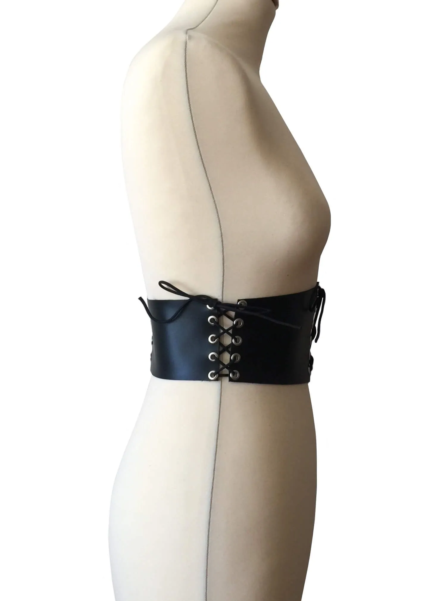 Корсет Buckle up выполнен из натуральной кожи черного цвета. Благодаря регулируемым пряжкам и шнуровке Вы сможете подогнать его под нужный размер. Обхват талии от 60 до 71 см.