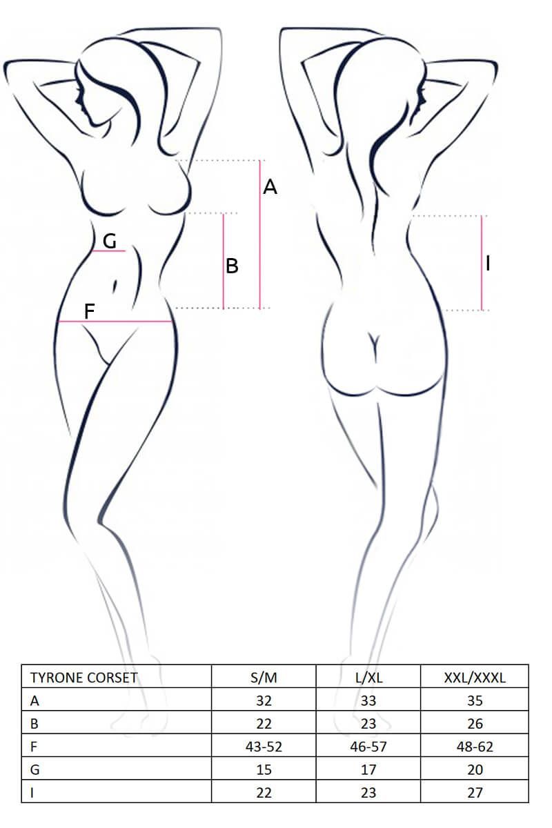 Эротический корсет Tyrone от бренда Lapin Rose сделан из полупрозрачного материала и декорирован контрастным белым кружевом с цветочным узором, легчайшими рюшами и шуровкой из атласных лент. Открытые чашки с косточками поддержат грудь и подчеркнут ее форму, делая Ваш образ невероятно сексуальным и откровенным.
